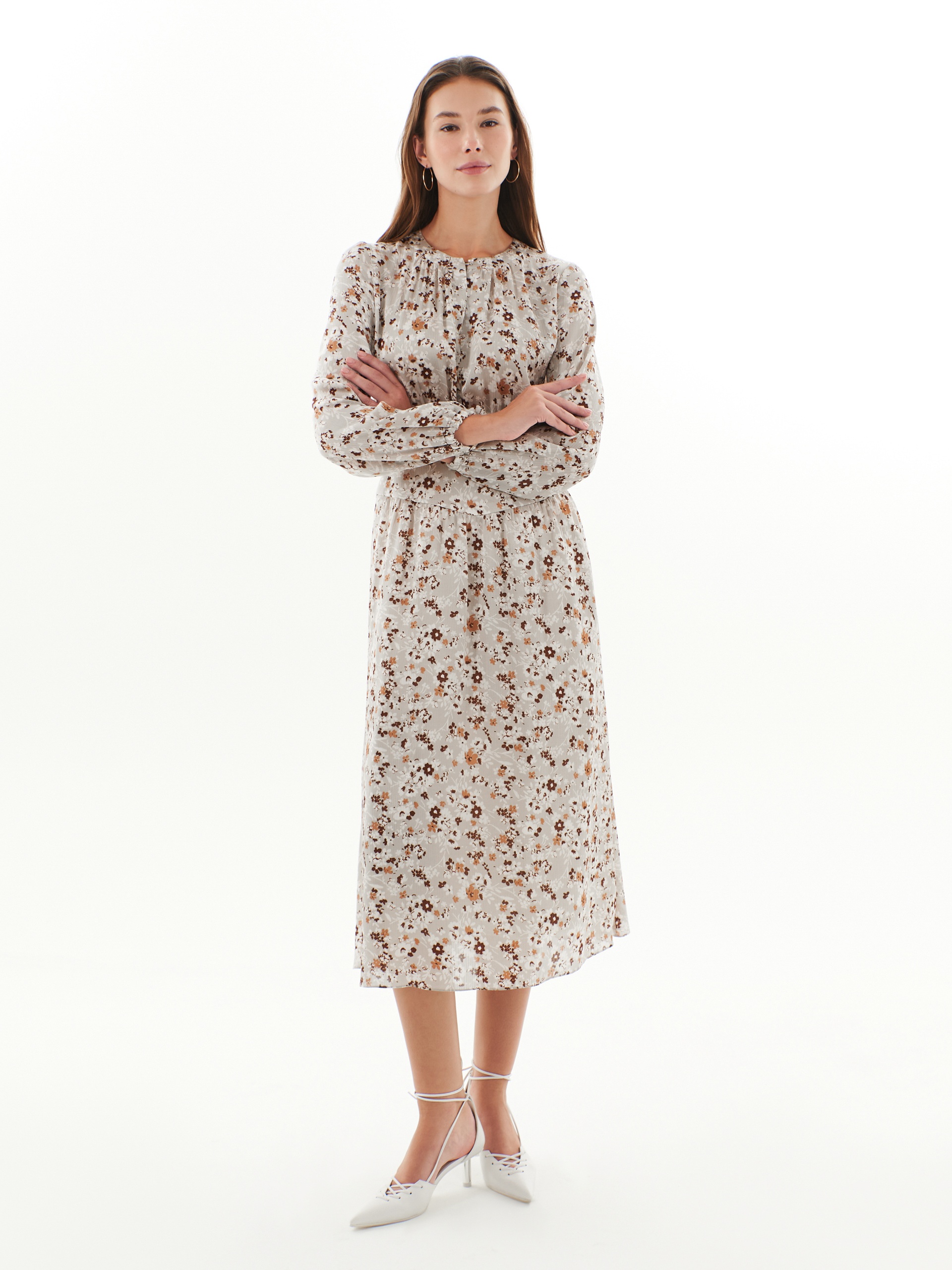 Нежное свободное платье с цветочным принтом