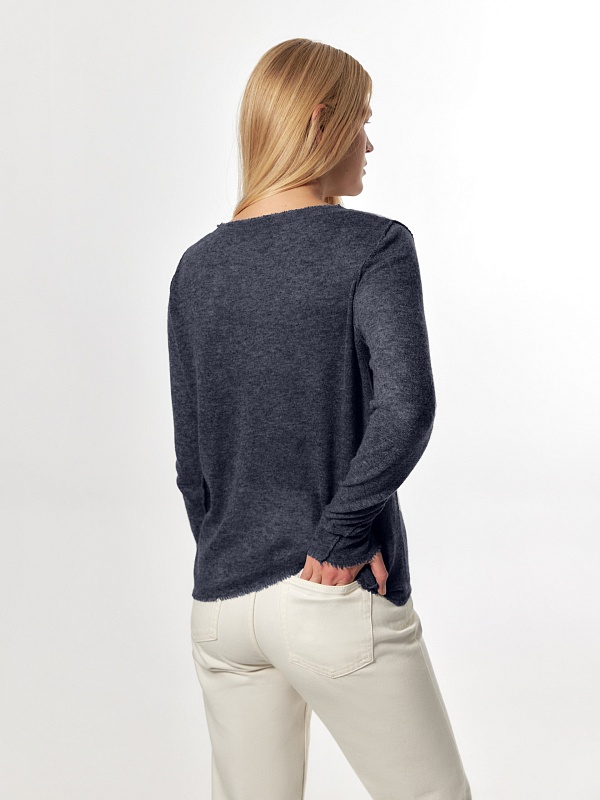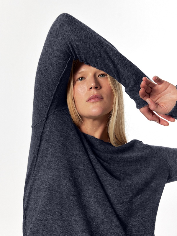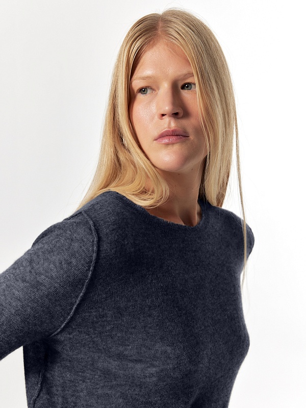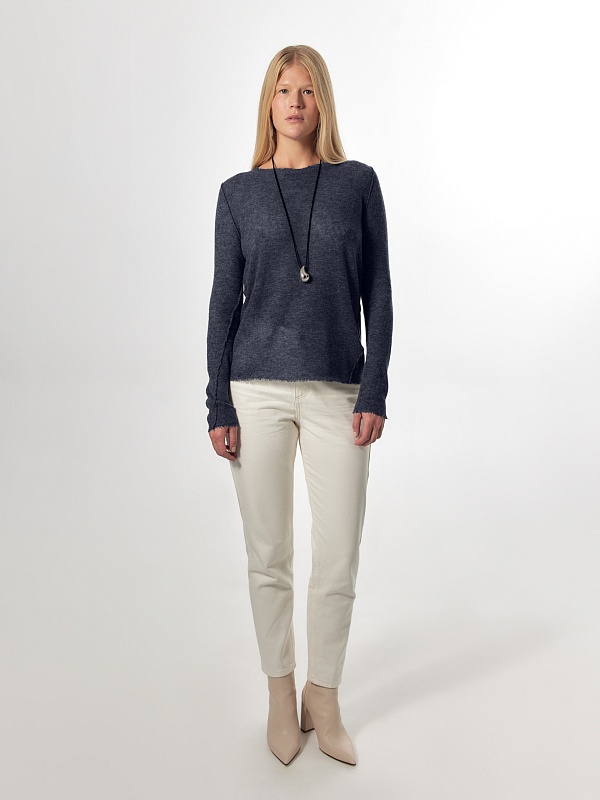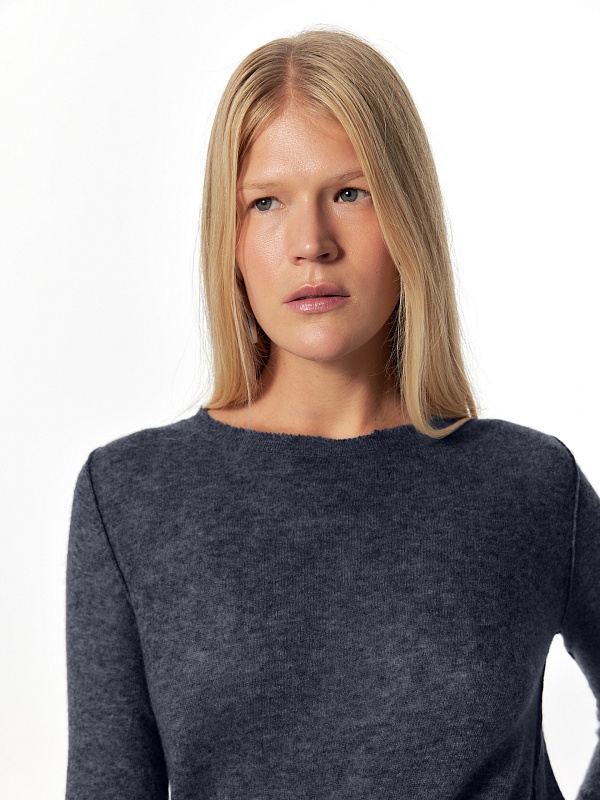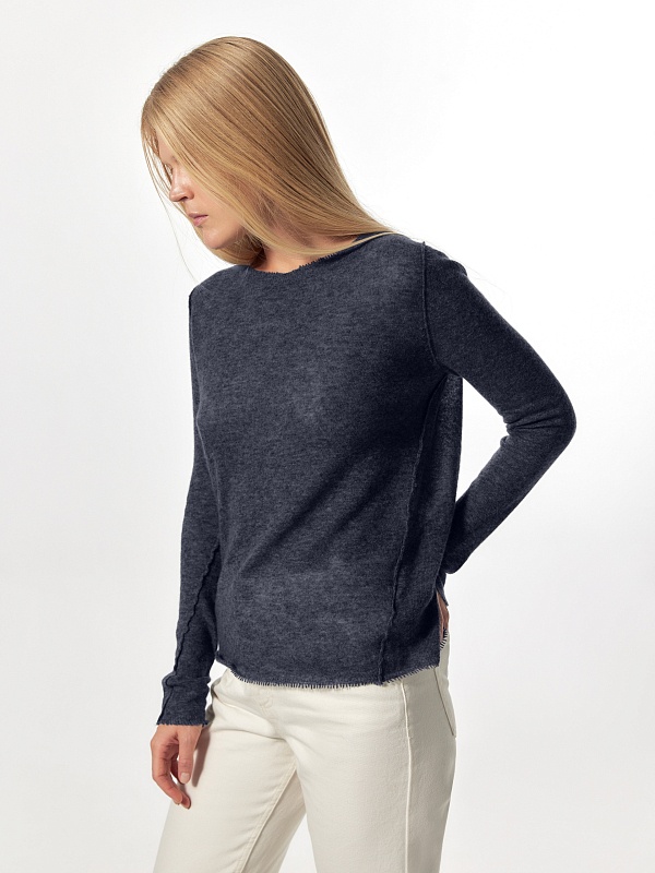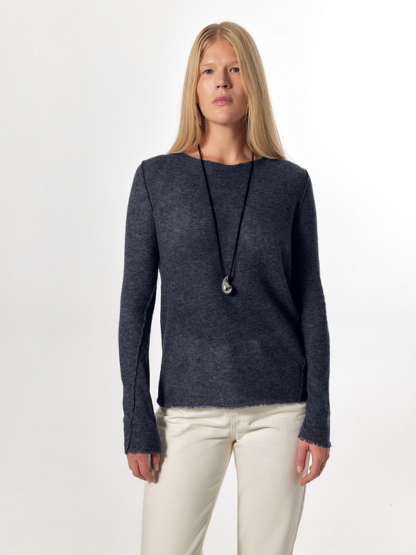 Лаконичный джемпер в стиле "гранж" из тонкой и легкой нити 100% кашемира комфортно облегает силуэт. Длинный прямой рукав, круглый вырез горловины позволяют комбинировать его с любыми жакетами и брюками из коллекции FW24-25.