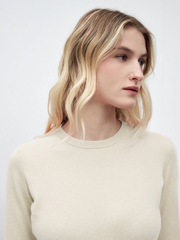 Уютный и романтичный джемпер из высококачественной смесовой мериносовой и кашемировой пряжи, рукав полной длины, круглая горловина. Тонкая и легкая шерсть мериноса абсолютно не колется, что позвляет ей стать прекрасной базой как первый слой под жакеты в осенний период. Мериносовая пряжа и кашемир отличаются тонкостью и мягкостью волокна, высокой прочностью, влагопоглощением, а также особыми теплоизоляционными характеристиками.