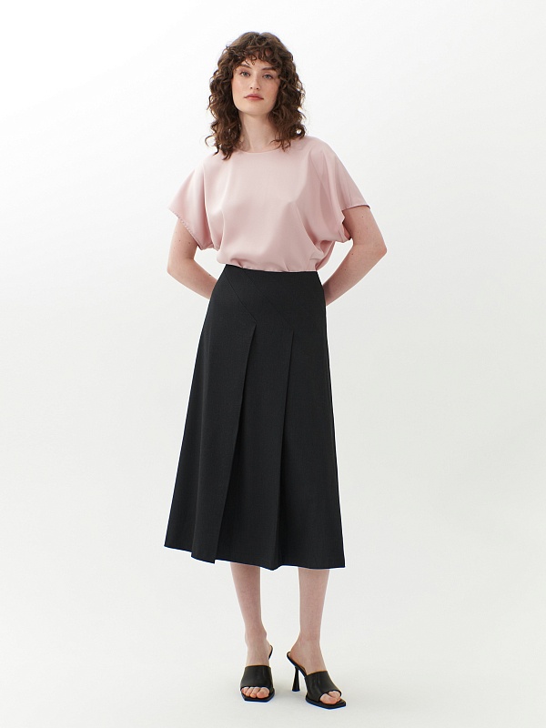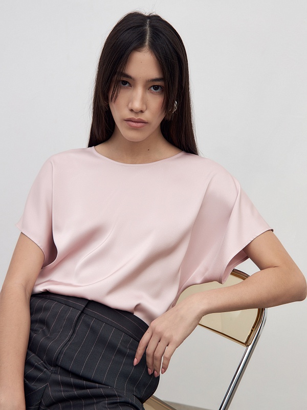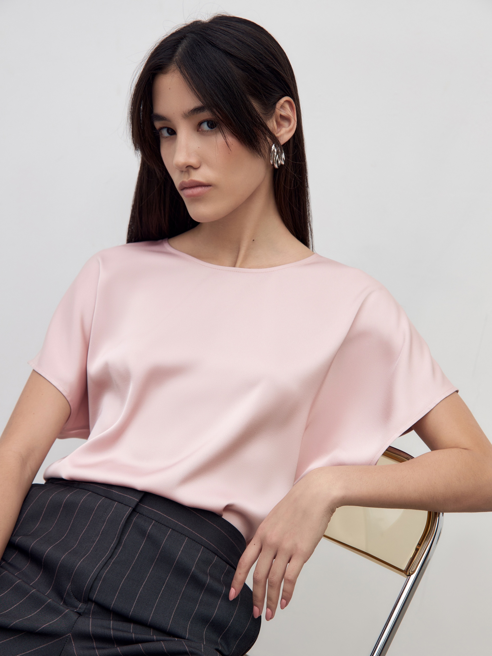 Прямая блуза из атласной ткани с горловиной лодочкой