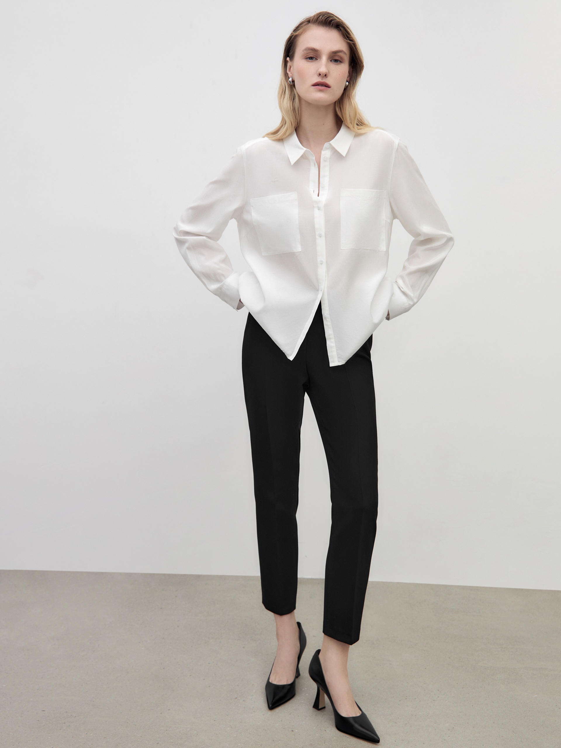 Зауженные брюки со стрелками из костюмной ткани