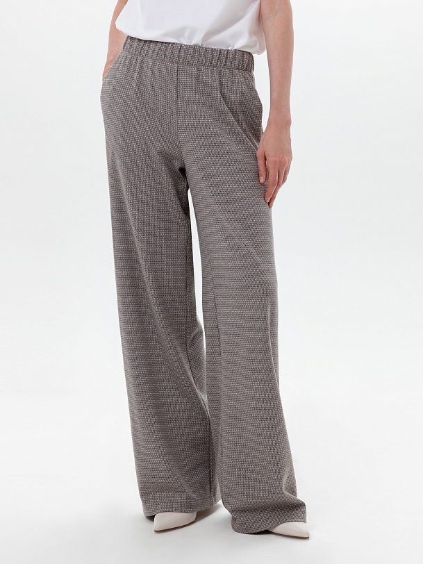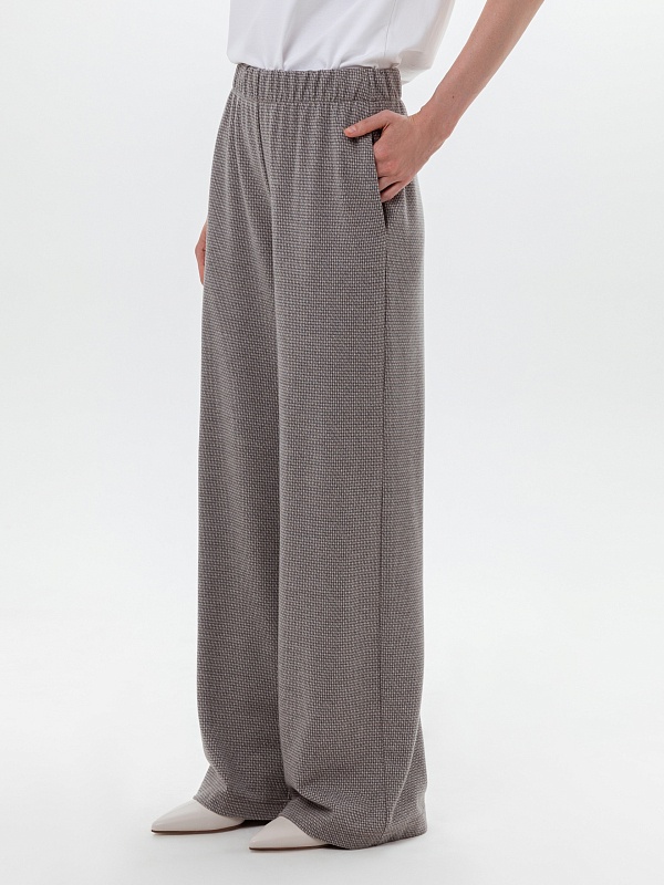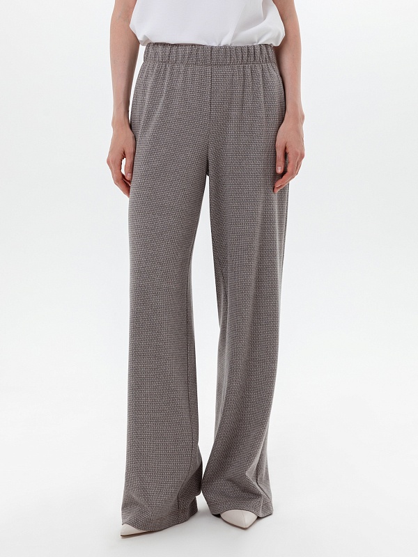 Широкие брюки на эластичном поясе с принтом "пье-де-пуль"