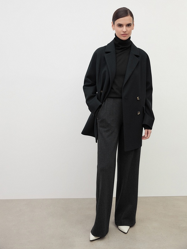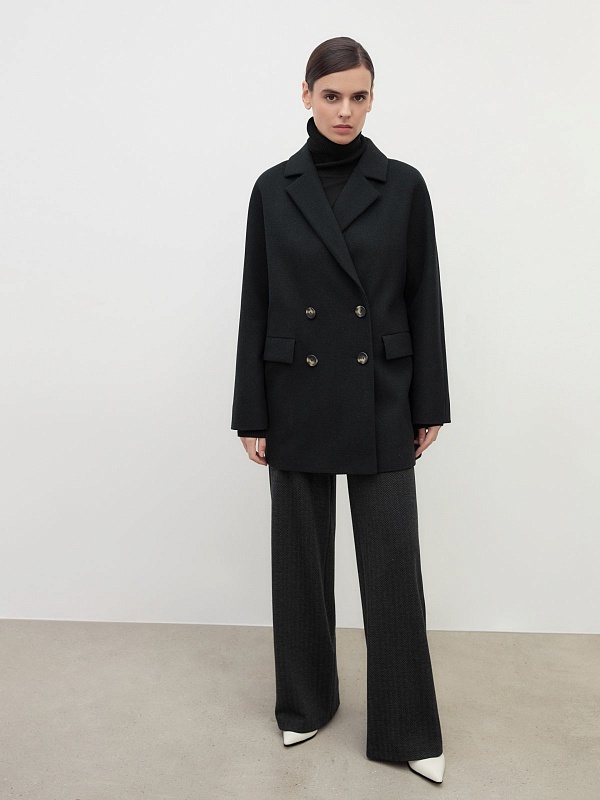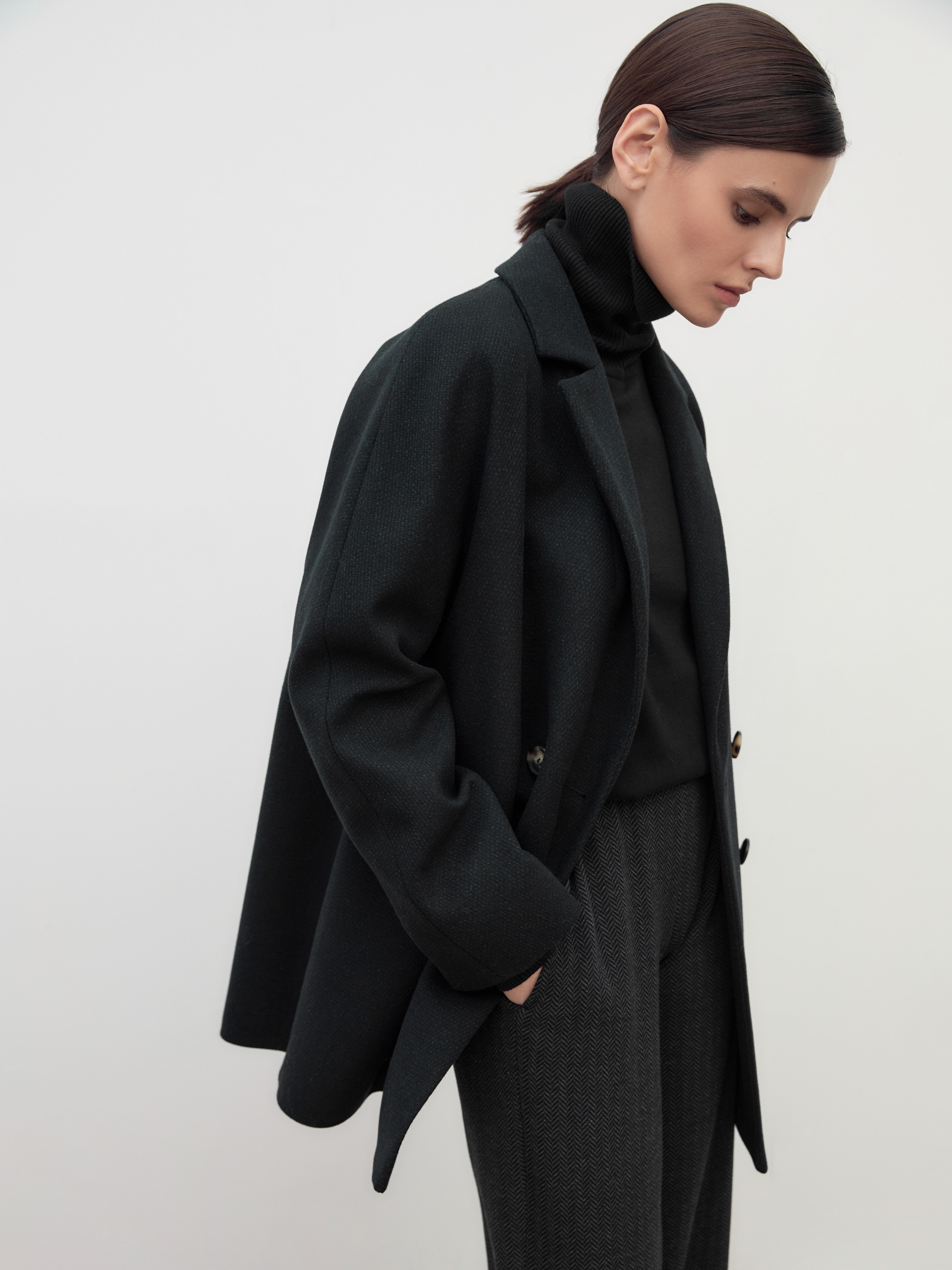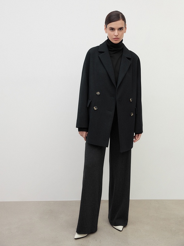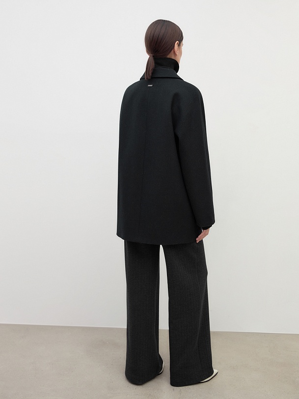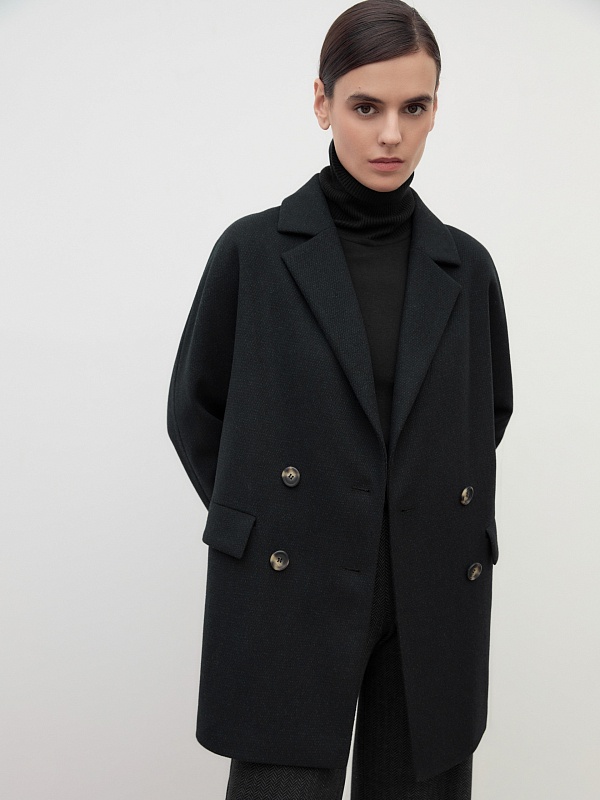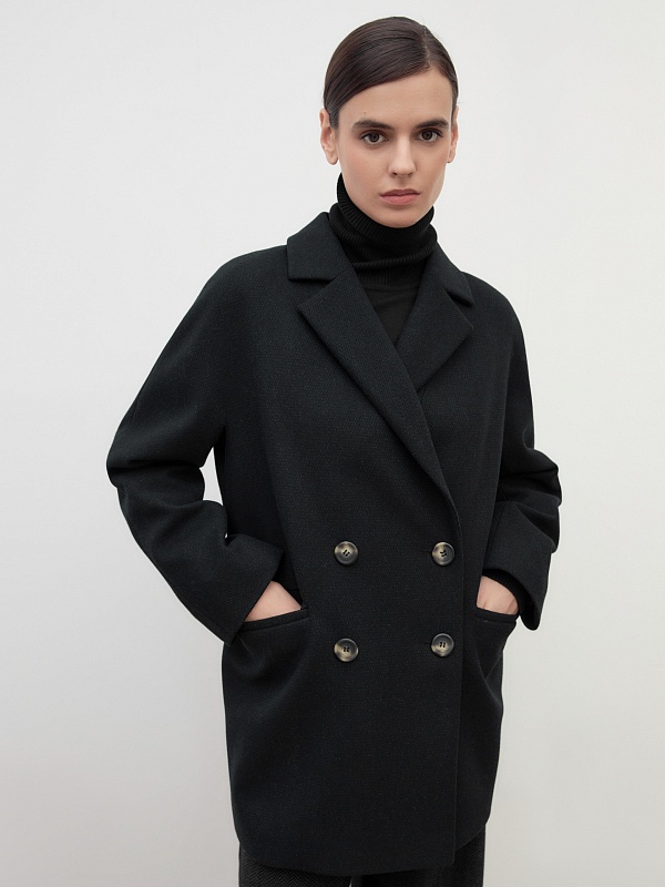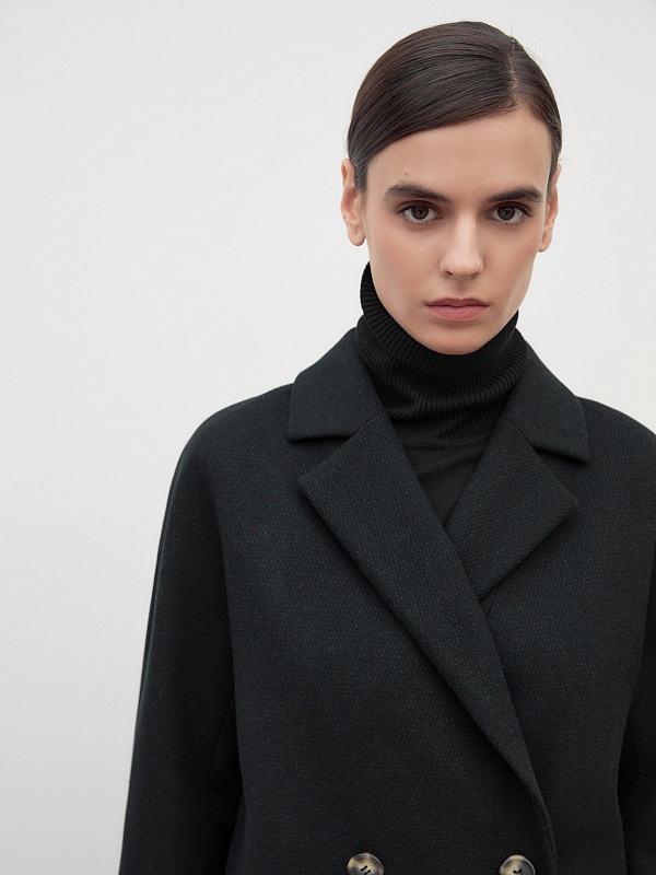 Двубортное полупальто прямого силуэта в модном цвете черно-зеленой диагонали. Полупальто сшито из премиальной твидовой ткани с высоким содержанием шерсти. Английский воротник с узким лацканом и свободный цельнокроенный рукав "кимоно" делают пальто стильным и удобным. По бокам располагаются вместительные карманы с клапанами. Застежка на два ряда крупных пуговиц. Спинка имеет дополнительное утепление. А для наилучшей защиты от ветра и непогоды пальто выполнено с использованием высокотехнологичной мембраны RaftPro. Произведено в Санкт-Петербурге.