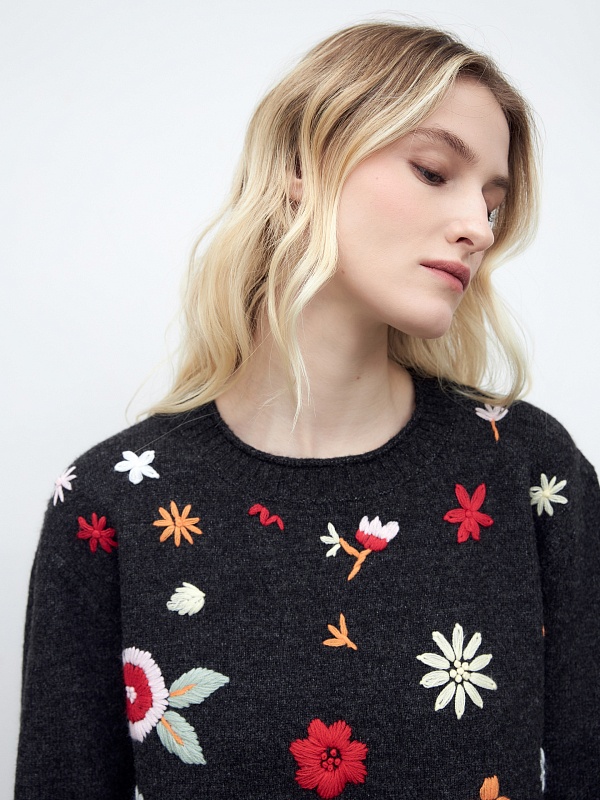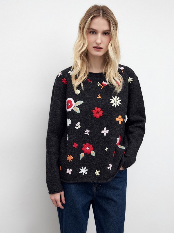 Вязаный джемпер с ручной вышивкой