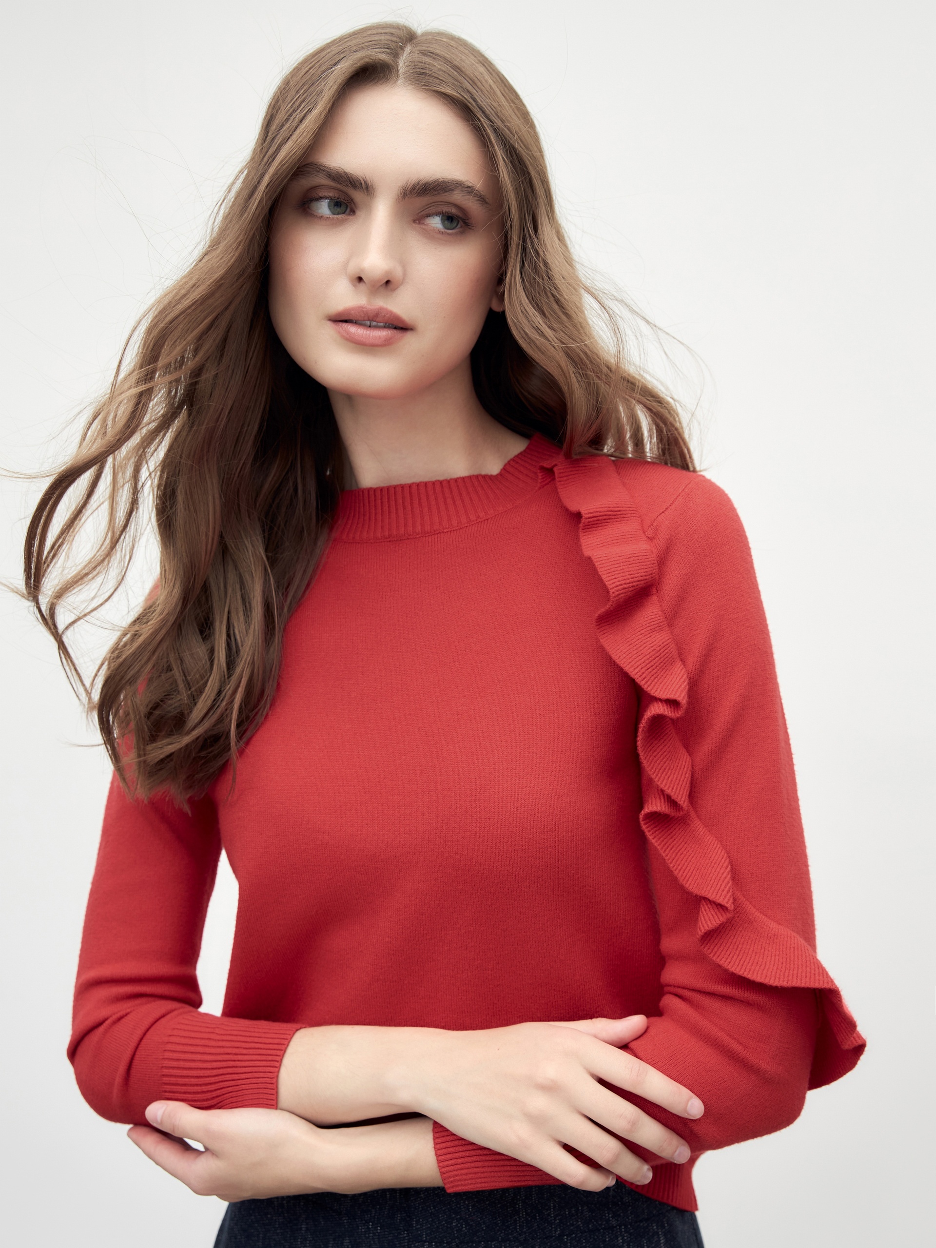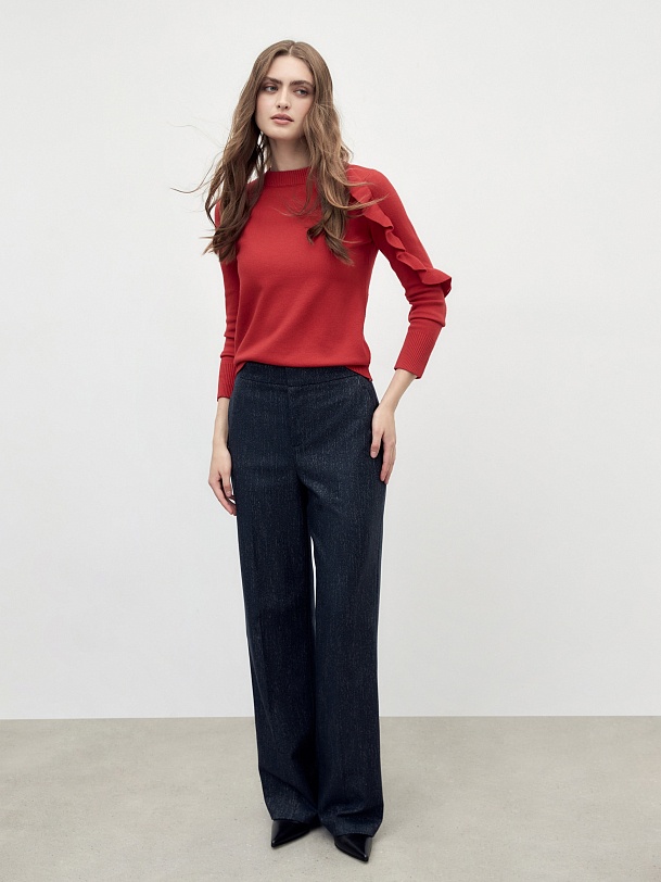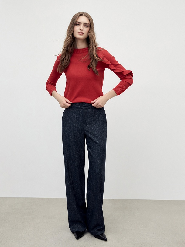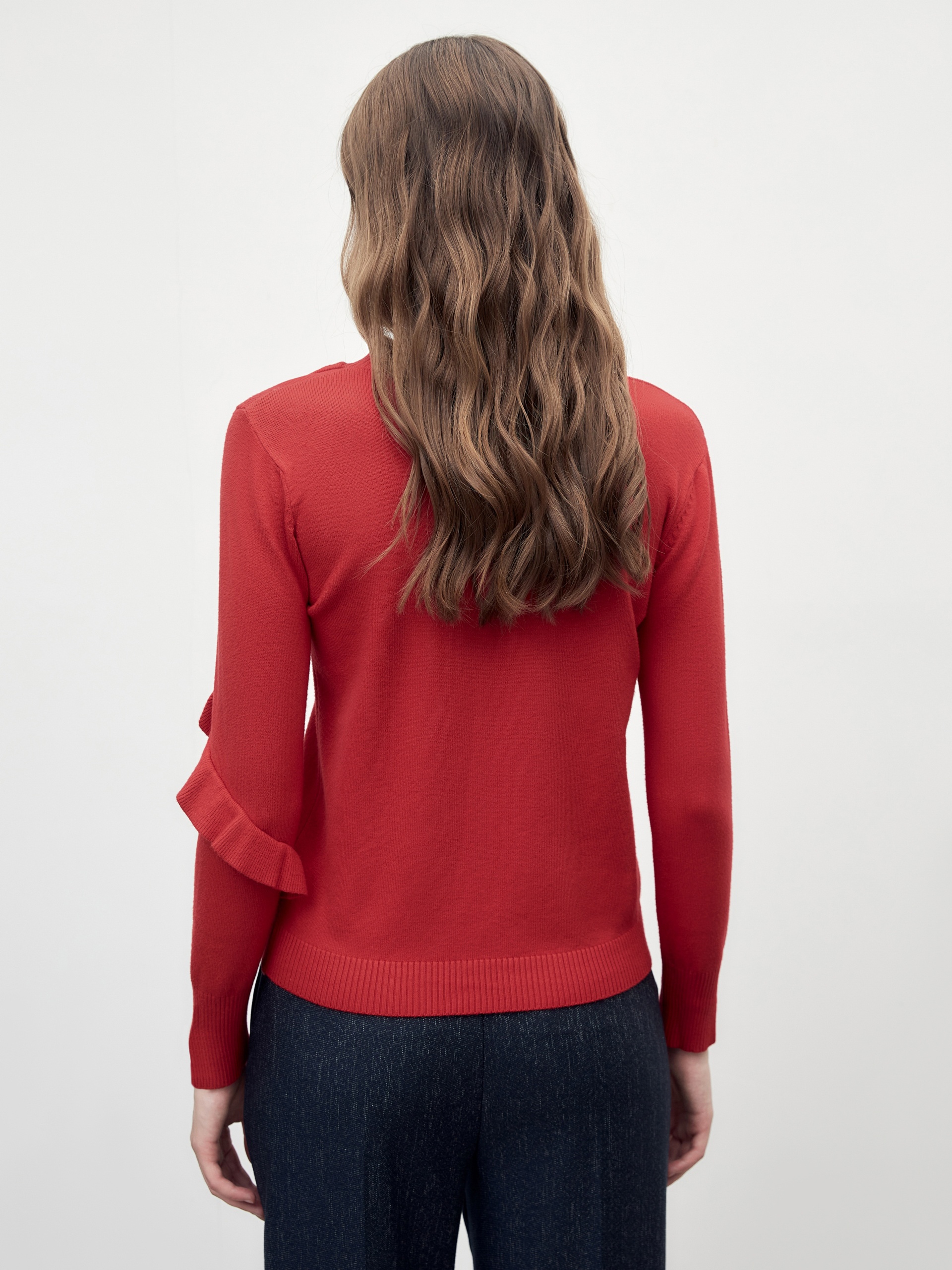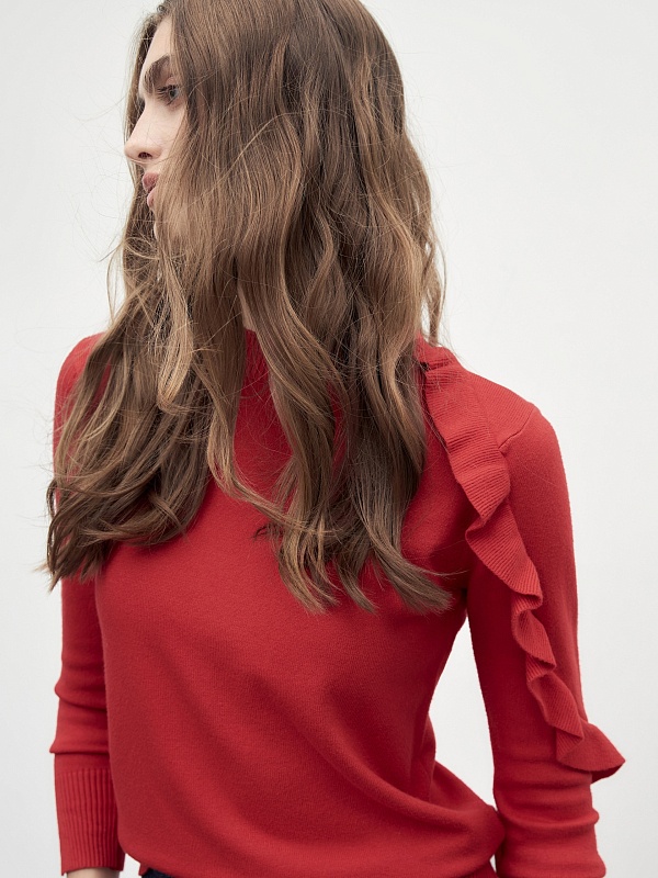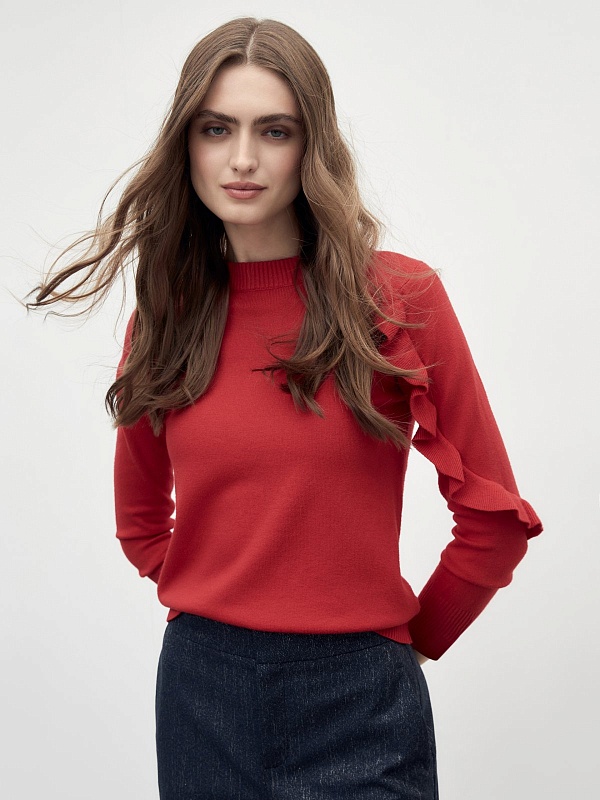 Вязаный джемпер с воланом на рукаве