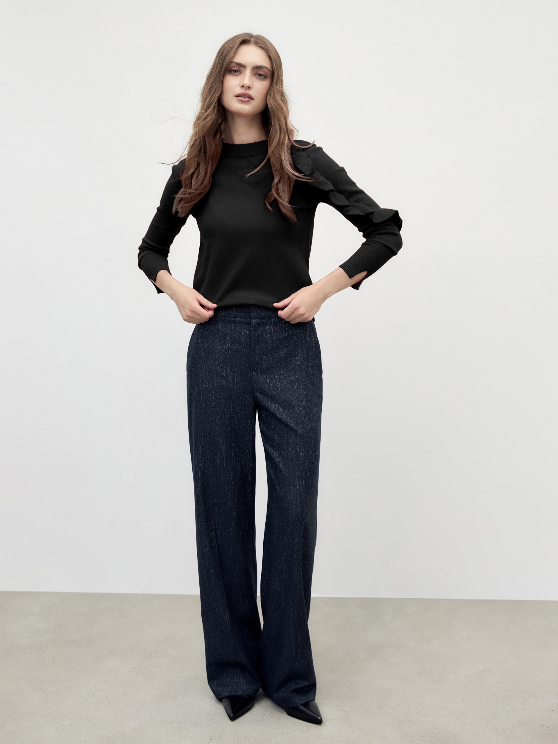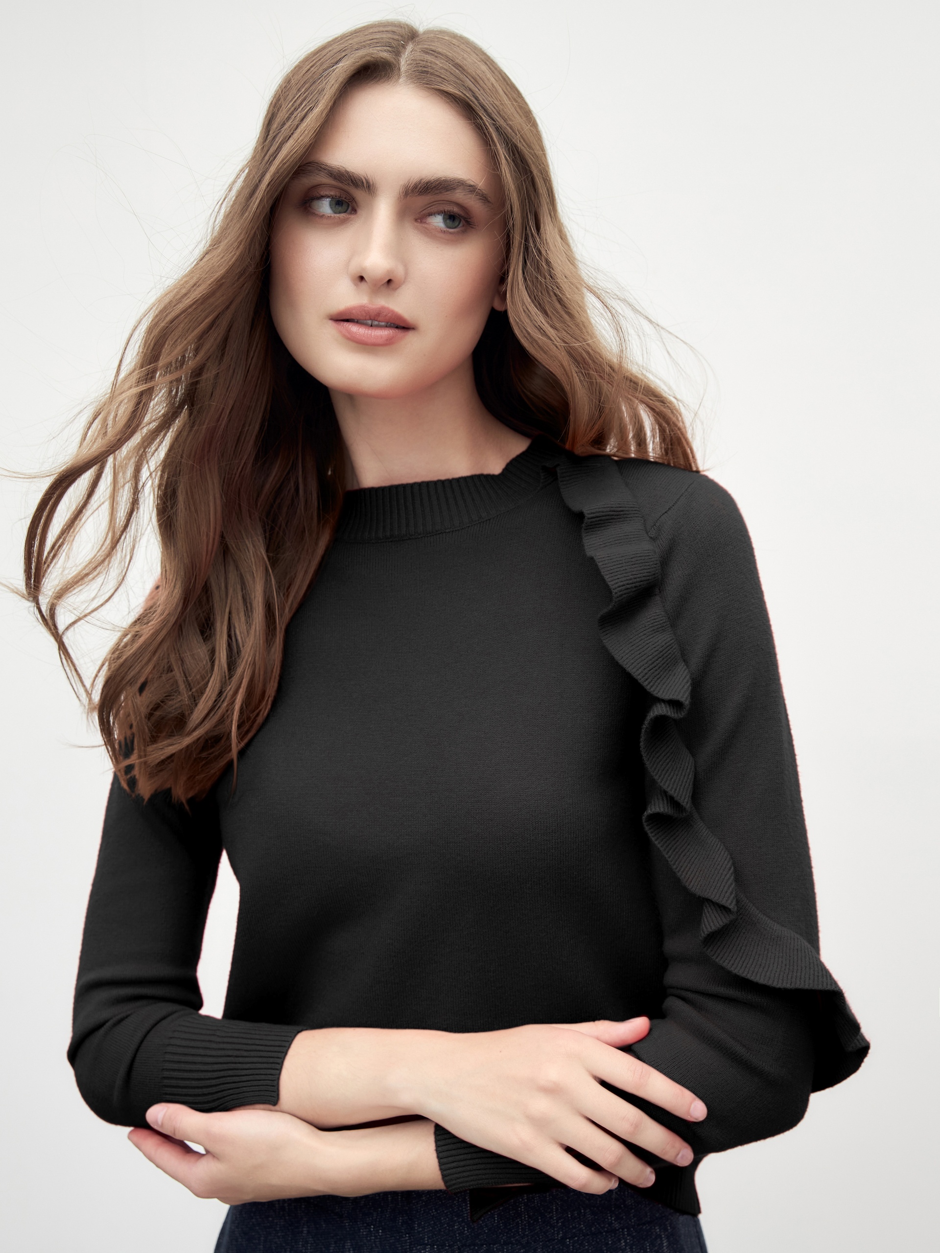 Вязаный джемпер с воланом на рукаве