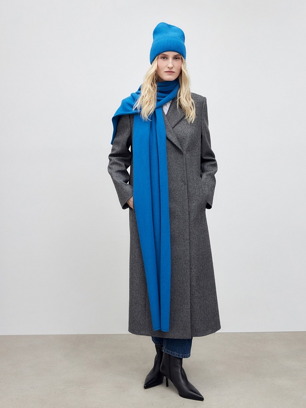 Длинный широкий шарф из теплой и мягкой пряжи с содержанием пуха ангорского кролика. Изделие имеет достаточную длину, чтобы полностью обернуть им шею и плечи. Шарф яркого синего цвета разнообразит любой образ с пальто из нашей коллекции и станет незаменимой базовой вещью в вашем гардеробе.