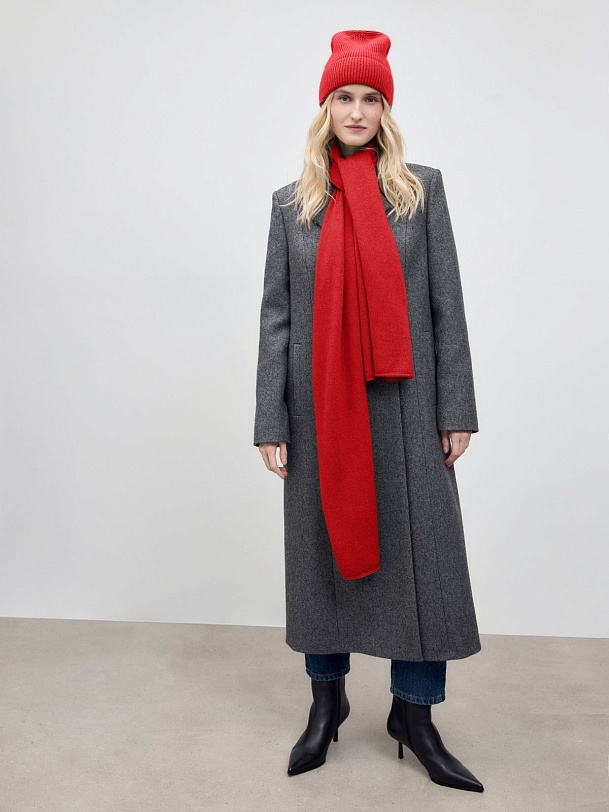 Длинный широкий шарф из теплой и мягкой пряжи с содержанием пуха ангорского кролика. Изделие имеет достаточную длину, чтобы полностью обернуть им шею и плечи. Шарф яркого красного цвета разнообразит любой образ с пальто из нашей коллекции и станет незаменимой базовой вещью в вашем гардеробе.