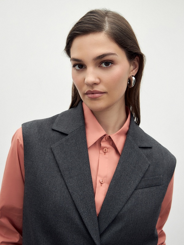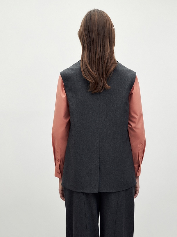 Прямой однобортный жилет из костюмной ткани с английским воротником