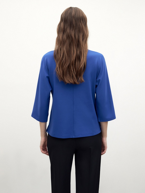 Трикотажный джемпер из вискозного смесового полотна, с цельнокроенным рукавом и изящным вырезом-капелькой на груди. Яркий цвет подчёркивает женственность изделия, создавая современный и нарядный образ.