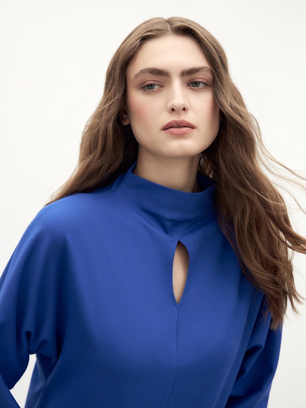 Выбирала между платьем и джемпером, решилась все же на джемпер (мне проще сочетать), хотя платье тоже красивое! Цвет яркий, красивый, подчеркивает мои голубые глаза.