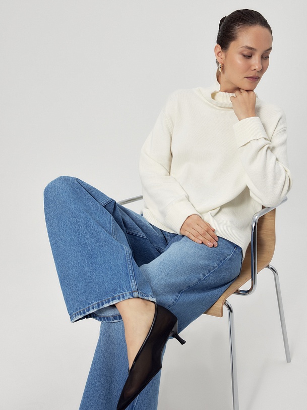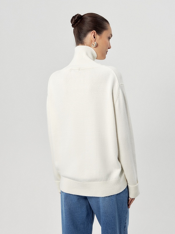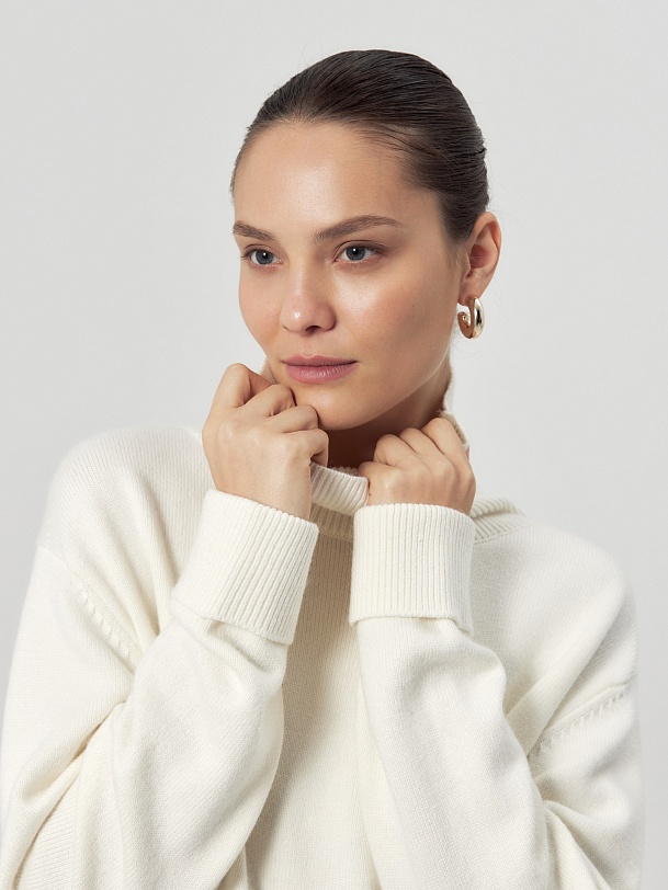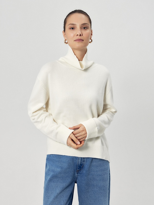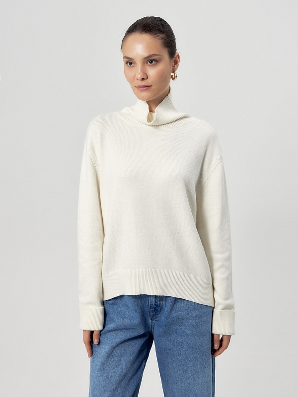 Объемный свитер прямого силуэта, выполнен из нежной пряжи с содержанием ангоры. Свитер связан гладью, высокая резинка но низу рукава, манжетам и воротнику-стойке. Благодаря объемному крою свитер идеально садится по фигуре и станет незаменимым элементом гардероба, позволяя создавать стильные и уютные образы на каждый день.
