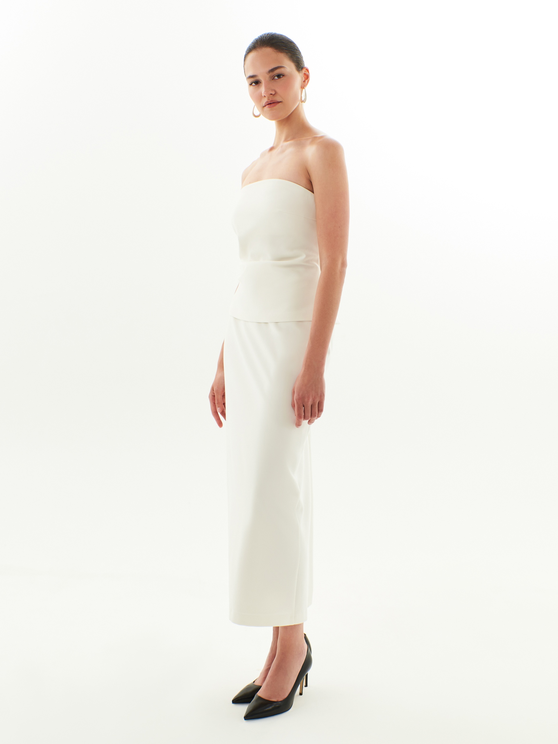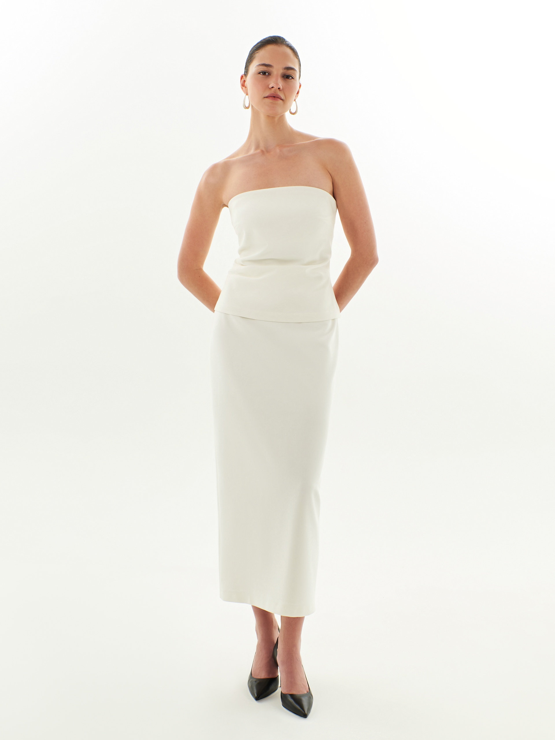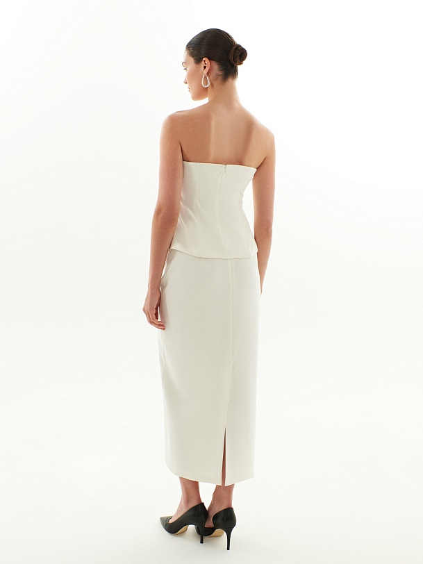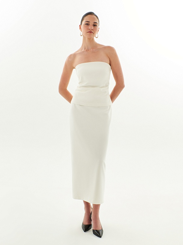 Прямая миди-юбка из костюмной ткани молочного цвета