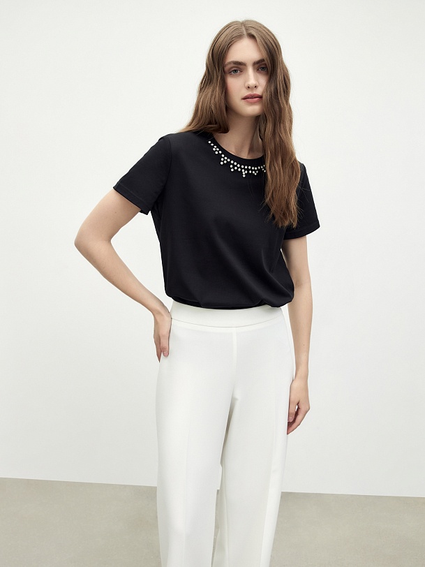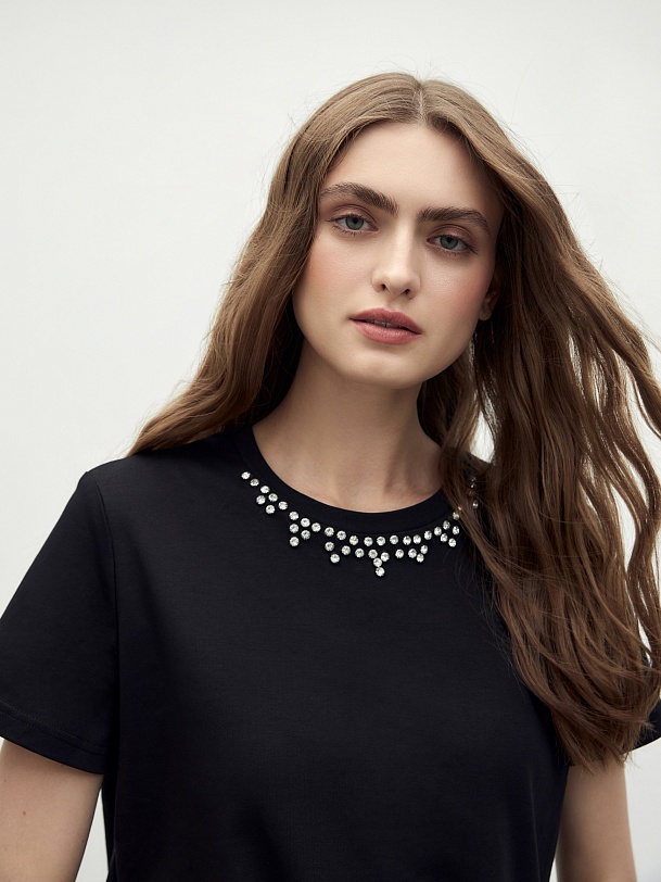 Футболка из 100% хлопка со стразами вдоль горловины