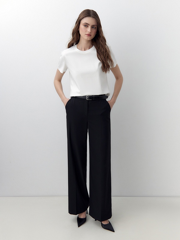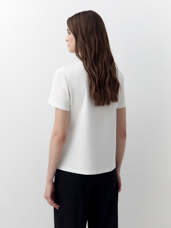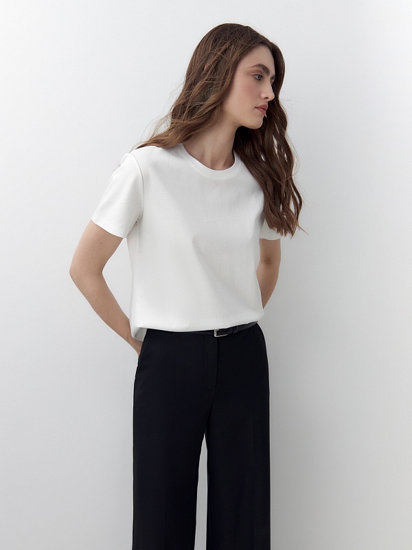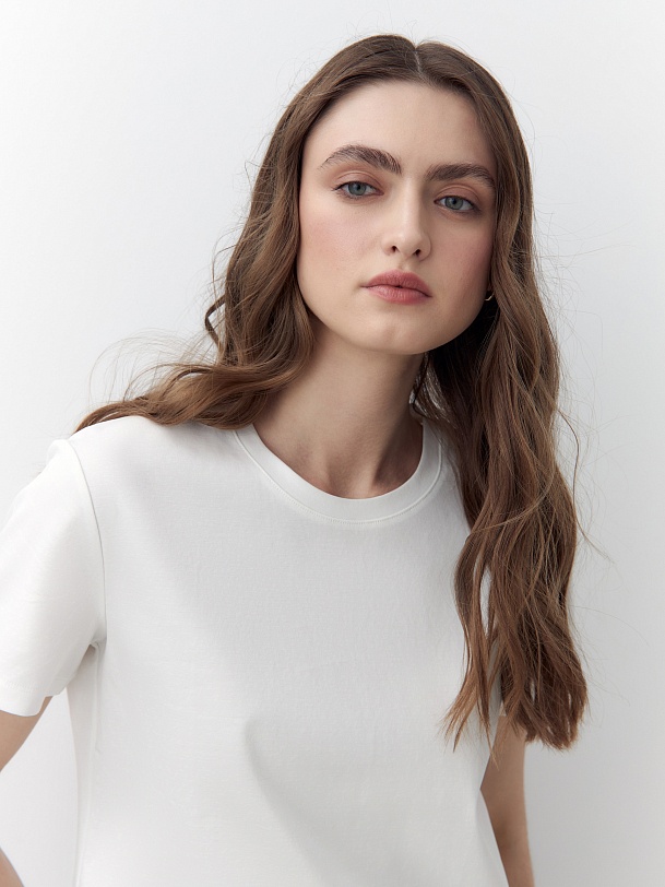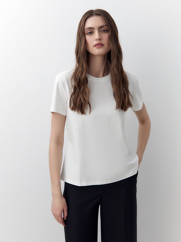 Футболка прямого силуэта классического белого цвета будет прекрасно сочетаться как с денимными изделиями, так и с классическими ансамблями. Мерсеризированный хлопок имеет шелковистый блеск и не деформируется после стирок, практически не мнется и не выцветает со временем.