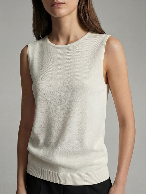 Прямой топ из вискозы с шелком — отличная базовая вещь под жакет или кардиган.
