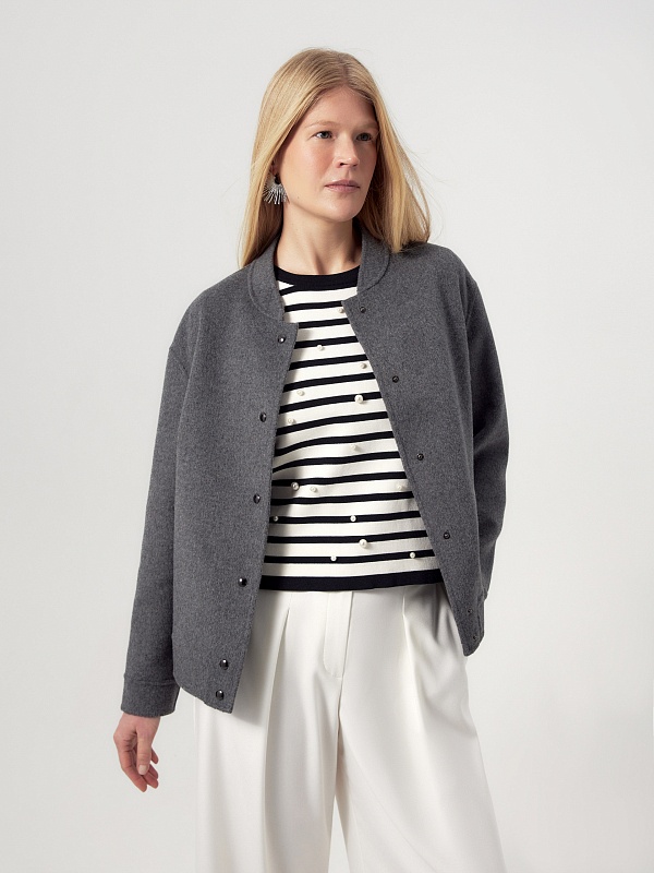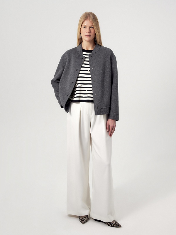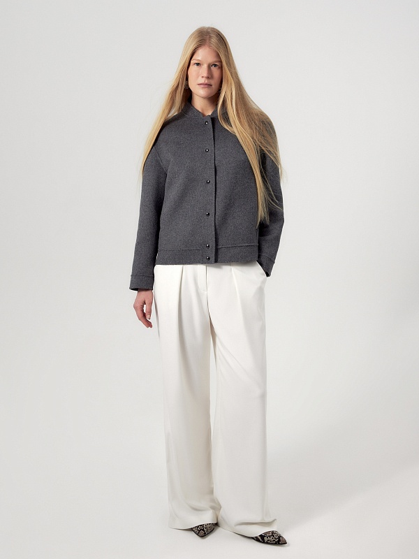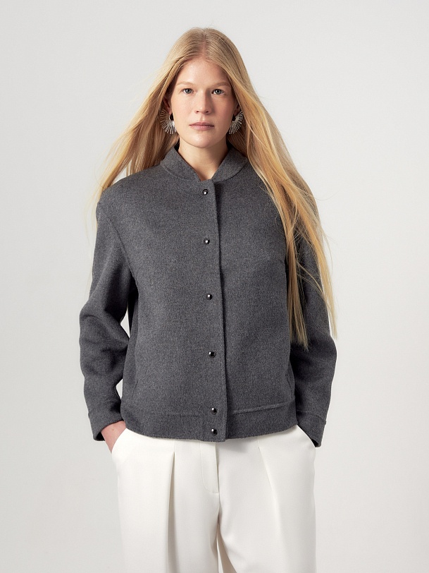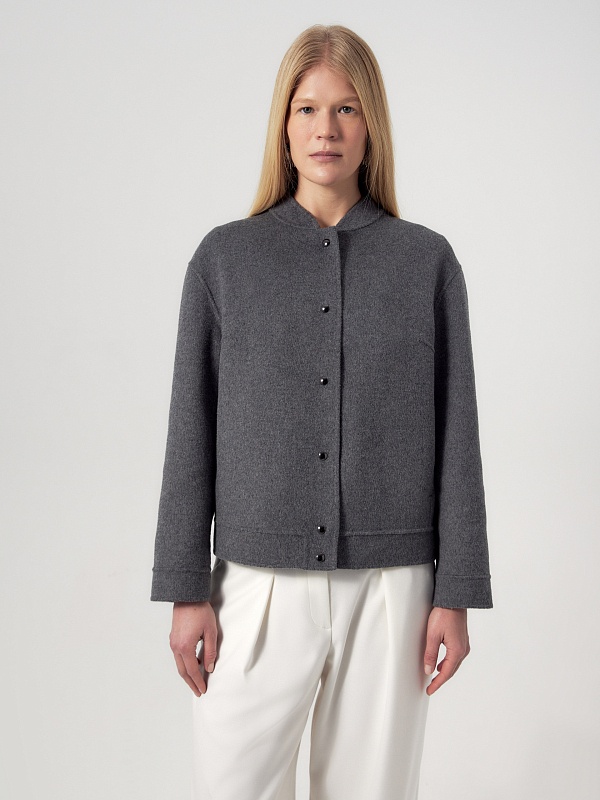 Укороченный бомбер double face из премиальной шерсти и кашемира