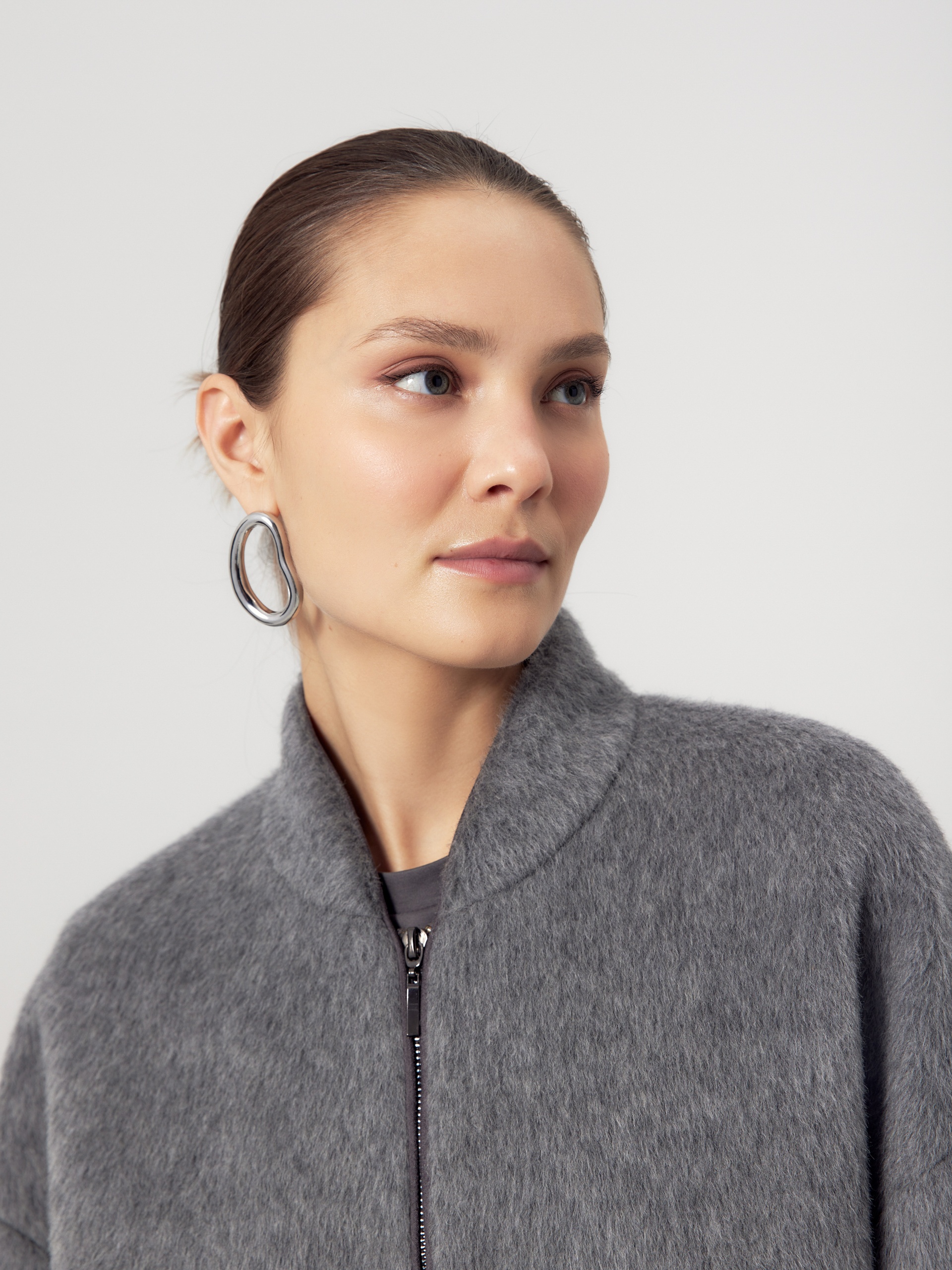 Лаконичная куртка-бомбер благородного серого цвета из премиальной шерстяной ткани с содержанием нежной шерсти альпаки. Свободный рубашечный рукав не стесняет движений. Низ рукава и низ изделия для наибольшего комфорта собраны на широкую резинку. Куртка имеет аккуратный воротник-стойку и вместительные карманы с широкими клапанами. Застежка на молнию. Изделие на подкладке. Произведено в Санкт-Петербурге.