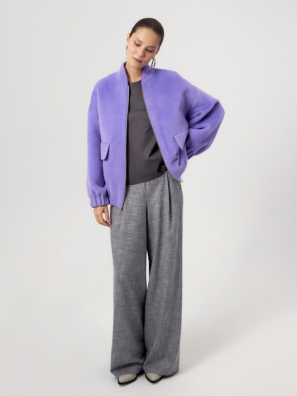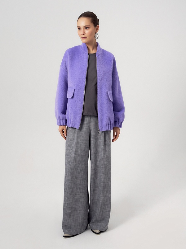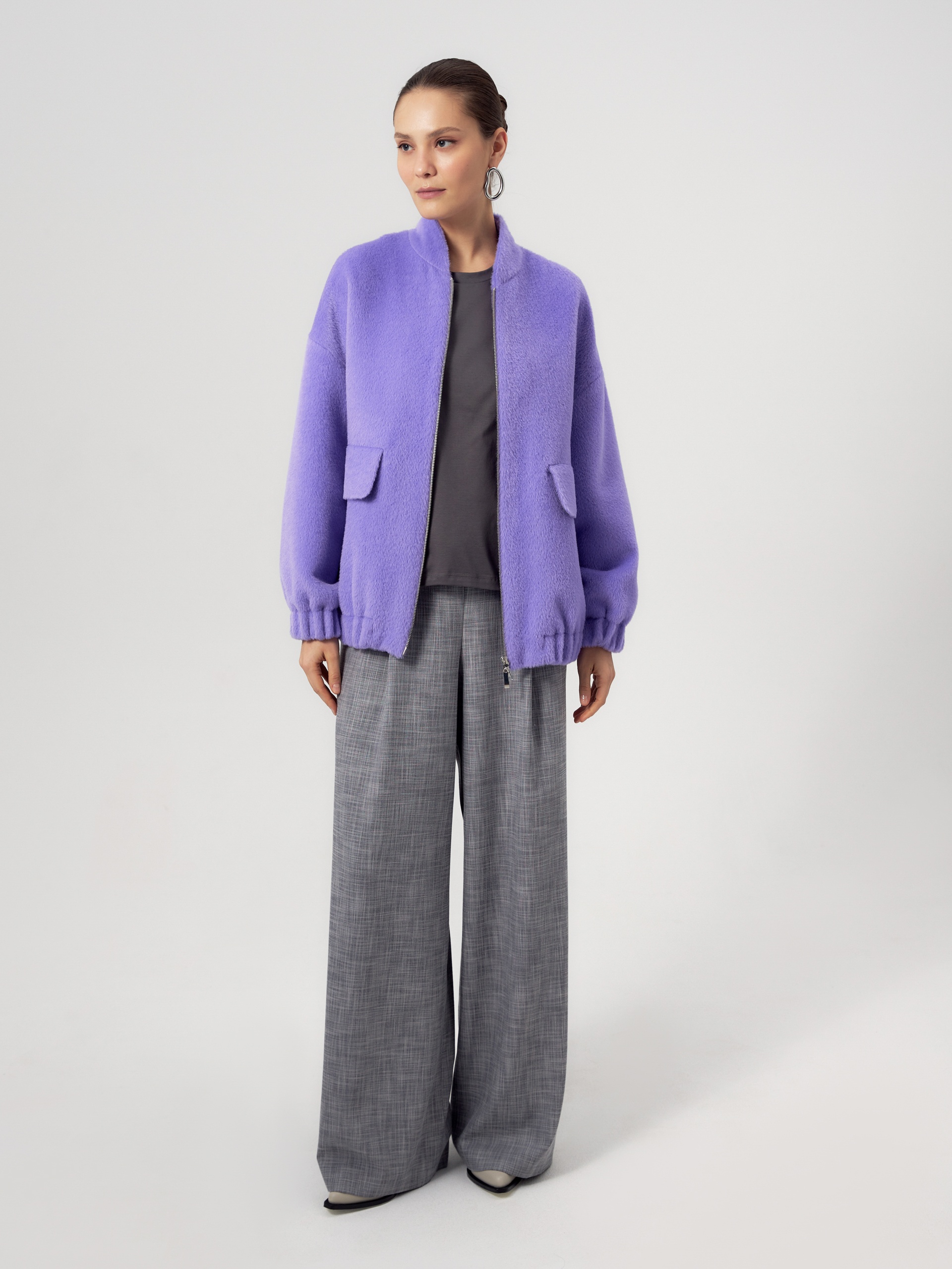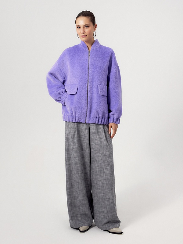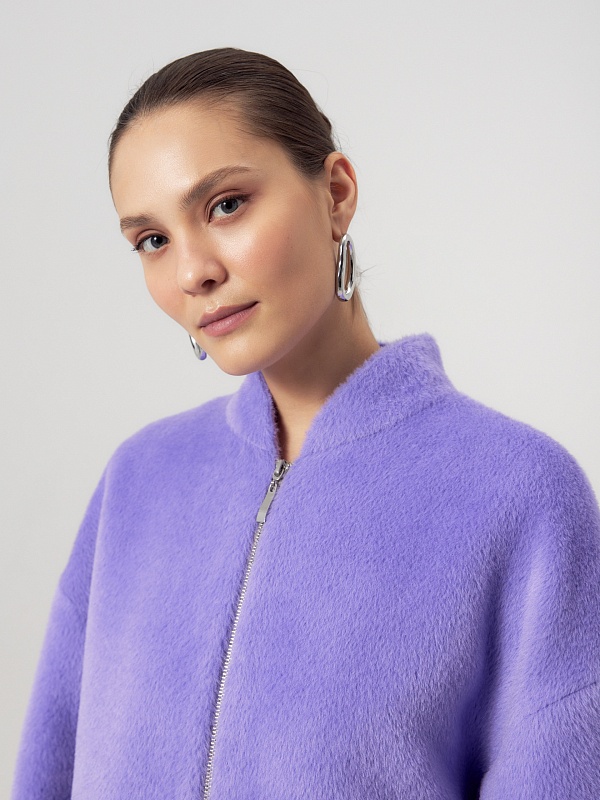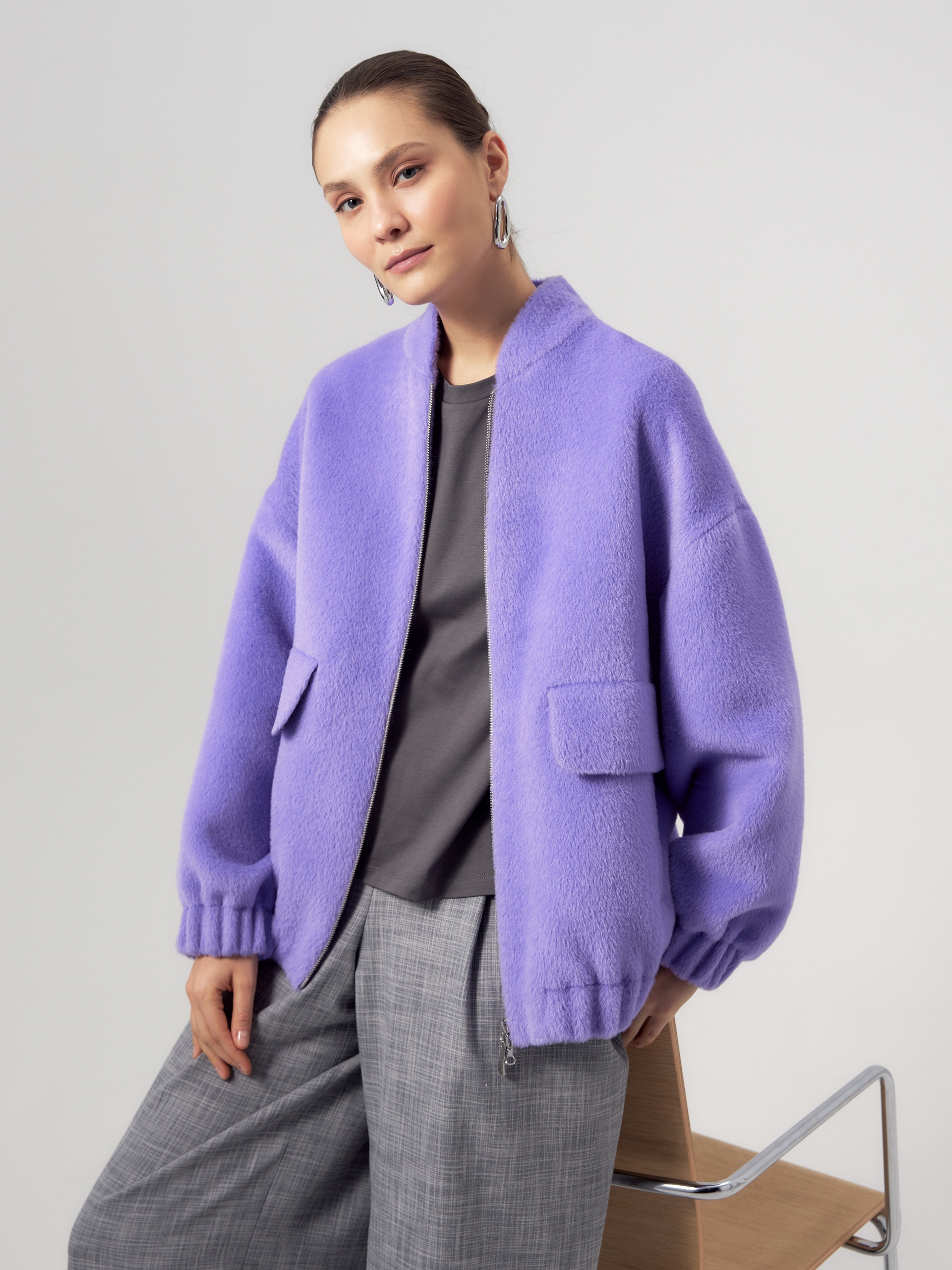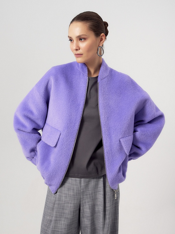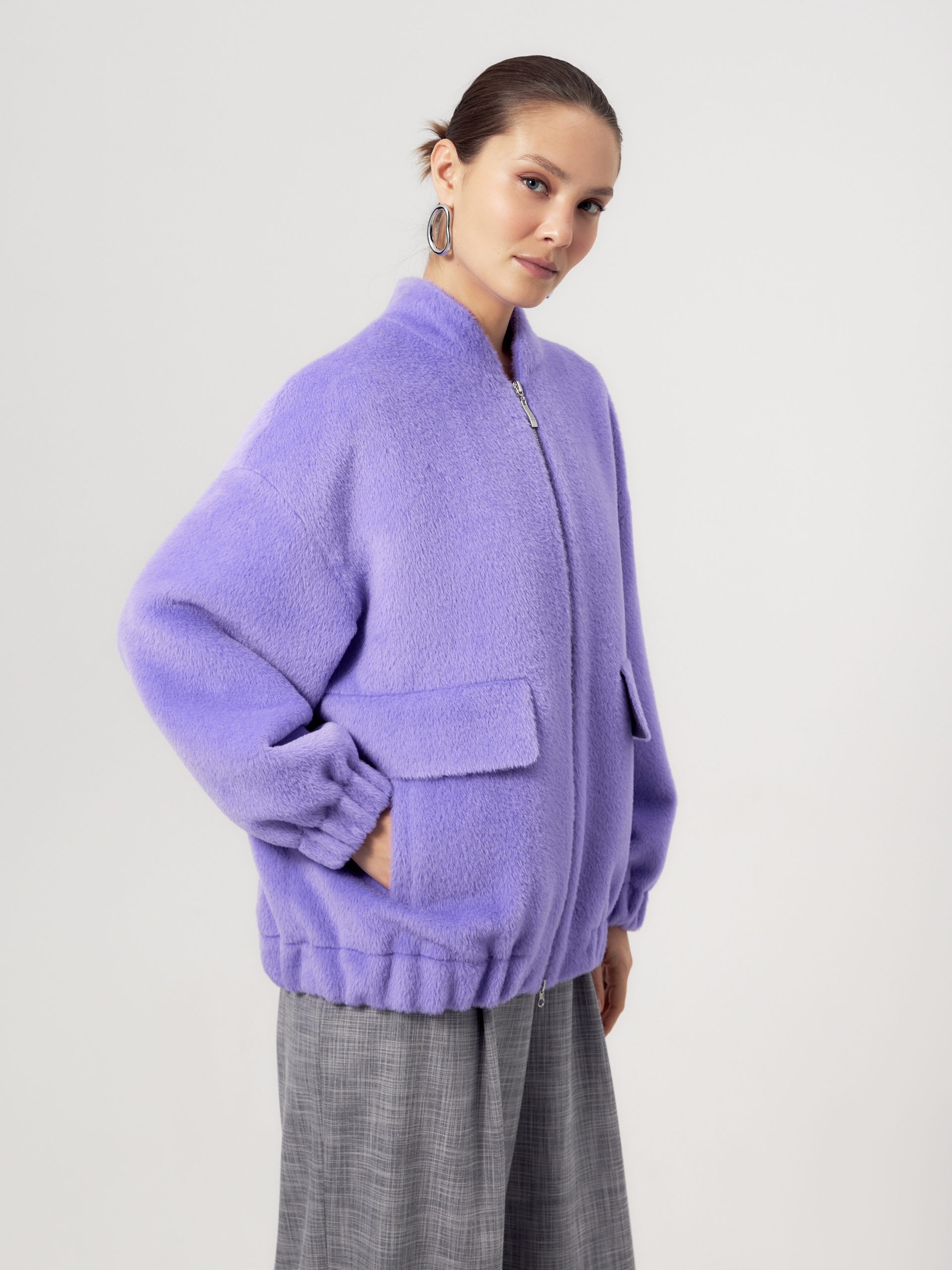 Лаконичная куртка-бомбер нежного лавандового оттенка из премиальной ткани альпака бэби сури. Свободный рубашечный рукав не стесняет движений. Низ рукава и низ изделия для наибольшего комфорта собраны на широкую резинку. Куртка имеет аккуратный воротник-стойку и вместительные карманы с широкими клапанами. Застёжка на молнию. Изделие на подкладке. Произведено в Санкт-Петербурге.
