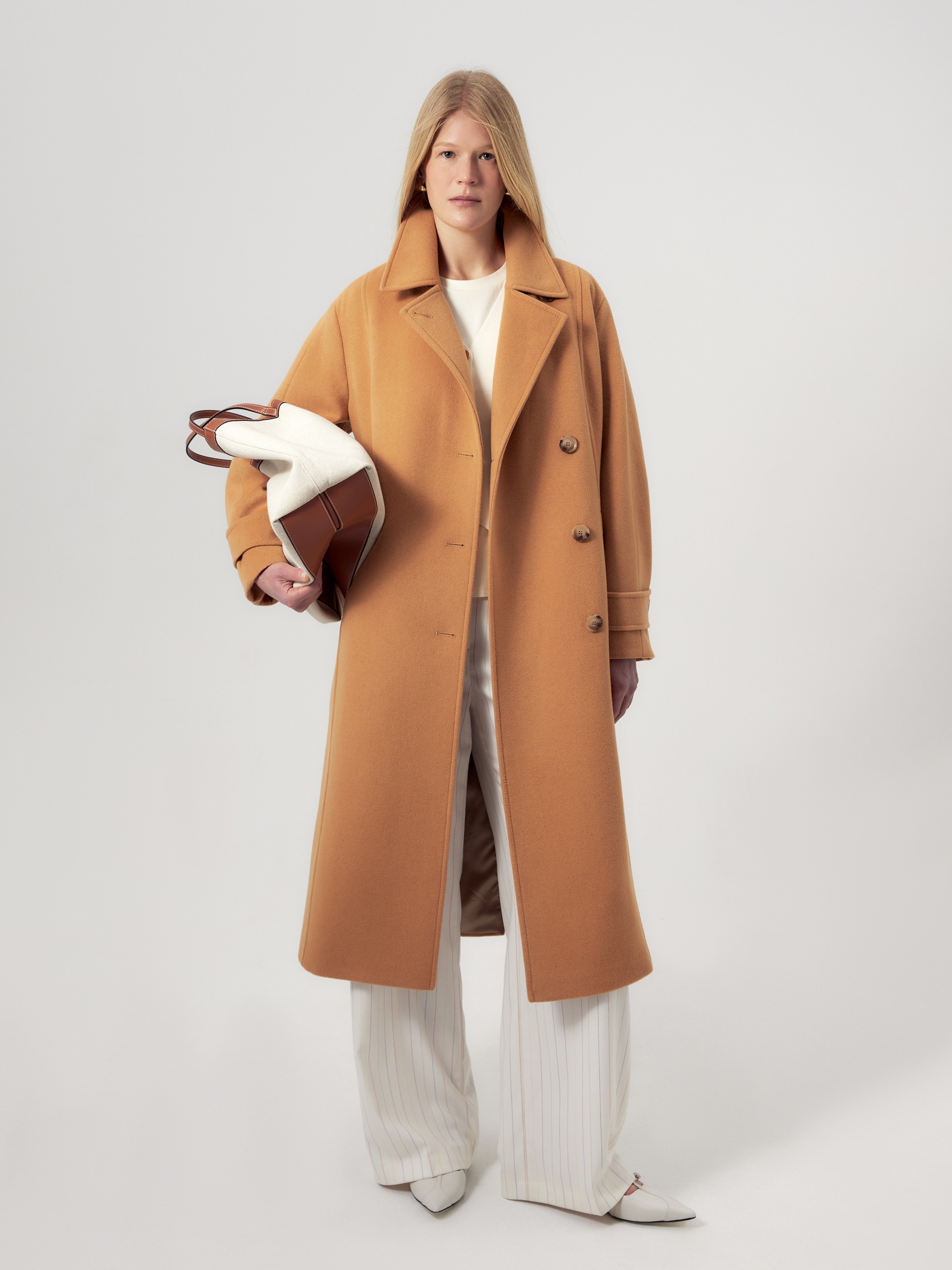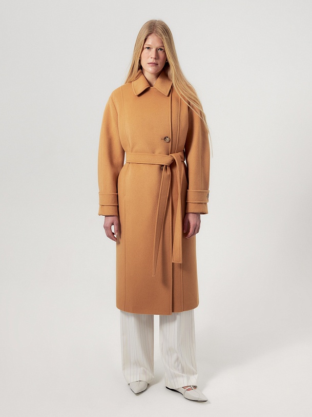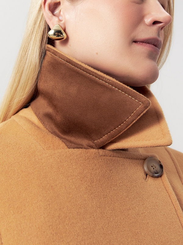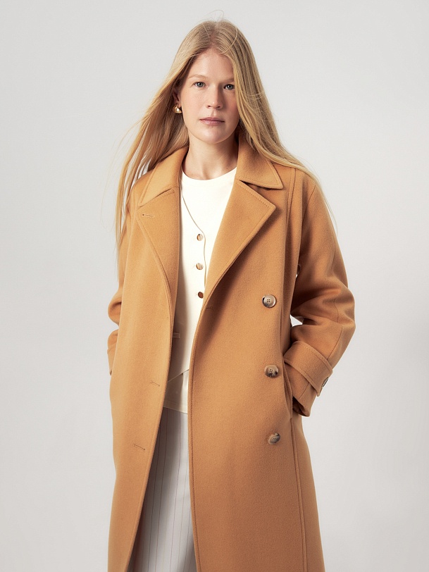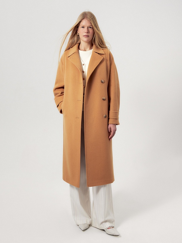 Лаконичный прямой силуэт, воротник, откладывающийся в английский, один ряд пуговиц, удобные карманы в рельефных швах и неклассическая форма рукава - все это делает новое пальто коллекции POMPA уникальным. Для данном модели мы выбрали ворсовую шерсть с добавлением нежных волокон кашемира в новом трендовом цвете паломино. Нижний воротник сделан из эко-кожи контрастного коричневого оттенка, что создаёт акцент на цвете и добавляет изделию скрытого шарма. Пальто изготовлено с использованием запатентованных технологий: высокотехнологичная мембрана RaftPro надежно защищает от ветра, холода и перепада температур. Произведено в Санкт-Петербурге.