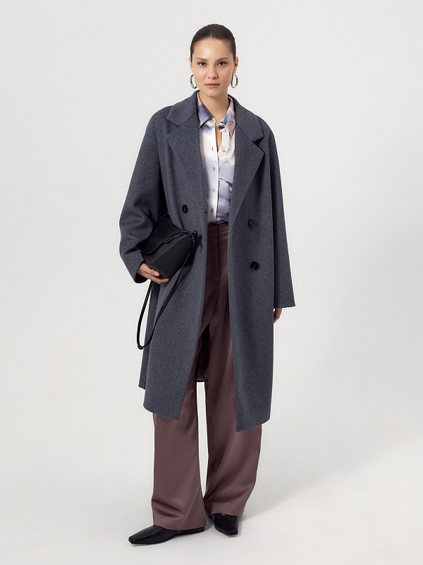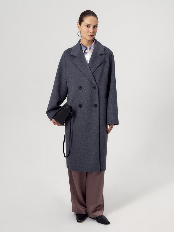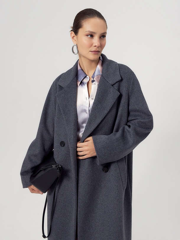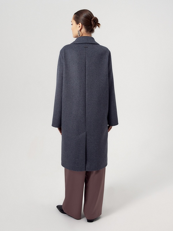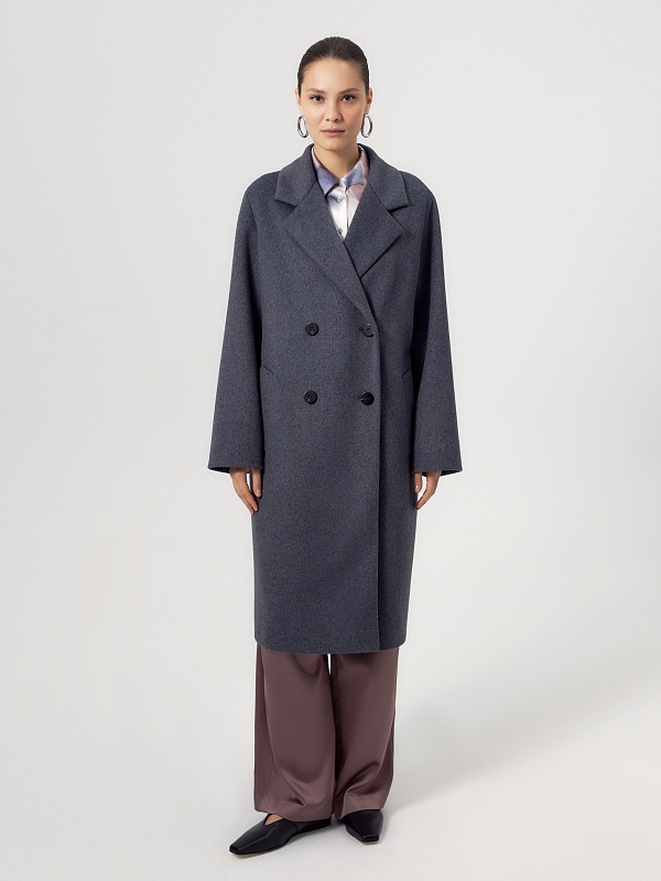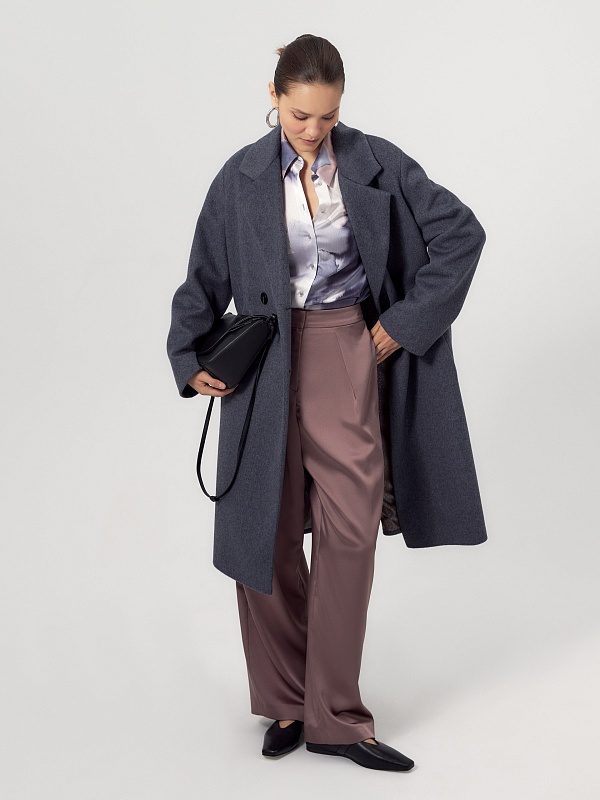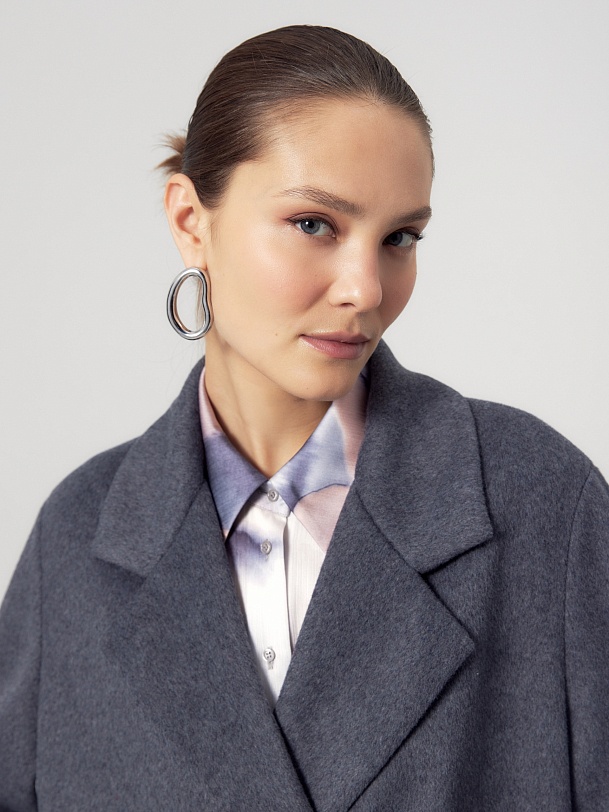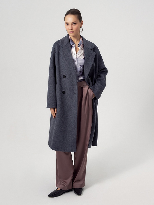 Лаконичное прямое пальто, легкое и элегантное, напоминает удлиненный жакет. Мягкая линия плеча, английский воротник и карманы с листочками. Это пальто можно надеть как с футболкой и джинсами, так и с костюмом, создавая совершенно разные образы. Для этой модели мы выбрали тонкую плотную и пластичную шерстяную ткань, которая хорошо держит форму, при этом не требует дополнительного проклеивания материала, за счёт чего создаётся мягкая форма силуэта. Застёжка на два ряда крупных пуговиц. Изделие на подкладке. Произведено в Санкт-Петербурге.