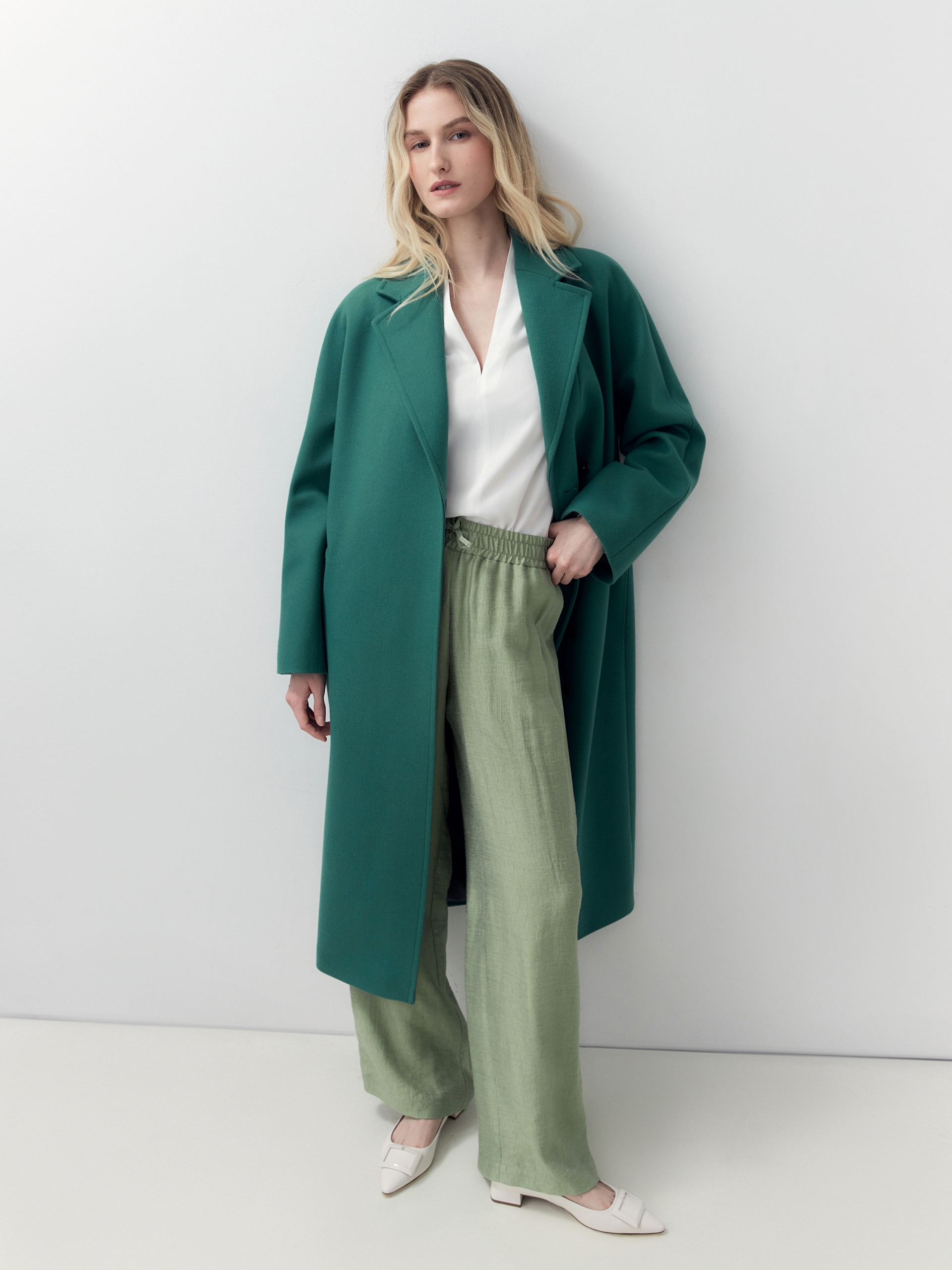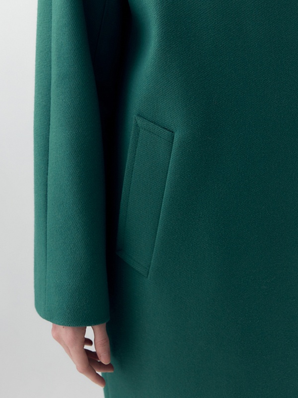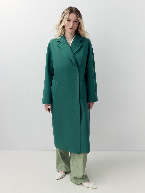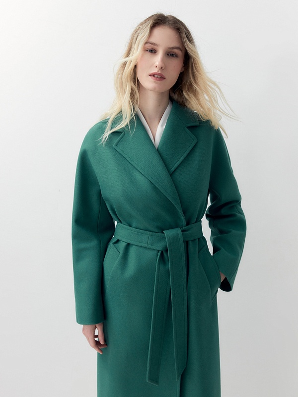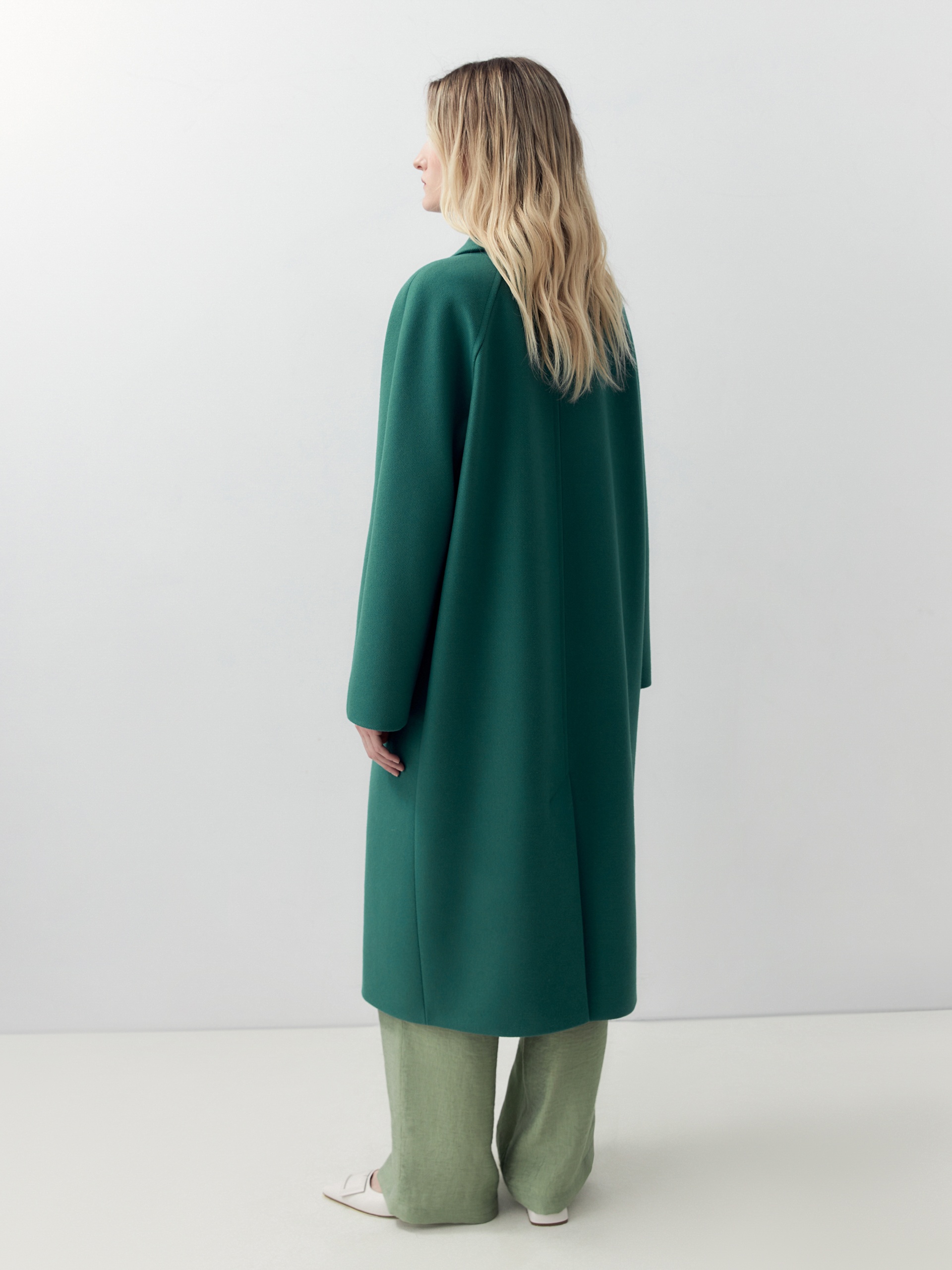 Двубортное пальто силуэта удлиненный кокон - это всем полюбившаяся классика пальто, представленная в новом видении и в современных оттенках. Пальто комфортной длины ниже колена, что расширяет возможности для формирования образов. Уникальный рукав-кимоно спереди и реглан на спинке создает уютный и расслабленный образ и не стесняет движений. Горловину пальто обрамляет классический широкий английский воротник. Пальто имеет два глубоких кармана с листочками. Застегивается на два ряда стильных крупных пуговиц. Дополняет образ съемный пояс, благодаря которому можно подчеркнуть талию. Пальто изготовлено из шерстяной ткани с деликатным диагональным переплетением, бондированную мембраной, которая хорошо держит тепло и форму. Трендовый оттенок "босфорский зелёный" создаёт весеннее настроение. Пальто изготовлено с использованием запатентованных технологий: высокотехнологичная мембрана RaftPro надежно защищает от ветра, холода и перепада температур. Произведено в Санкт-Петербурге.