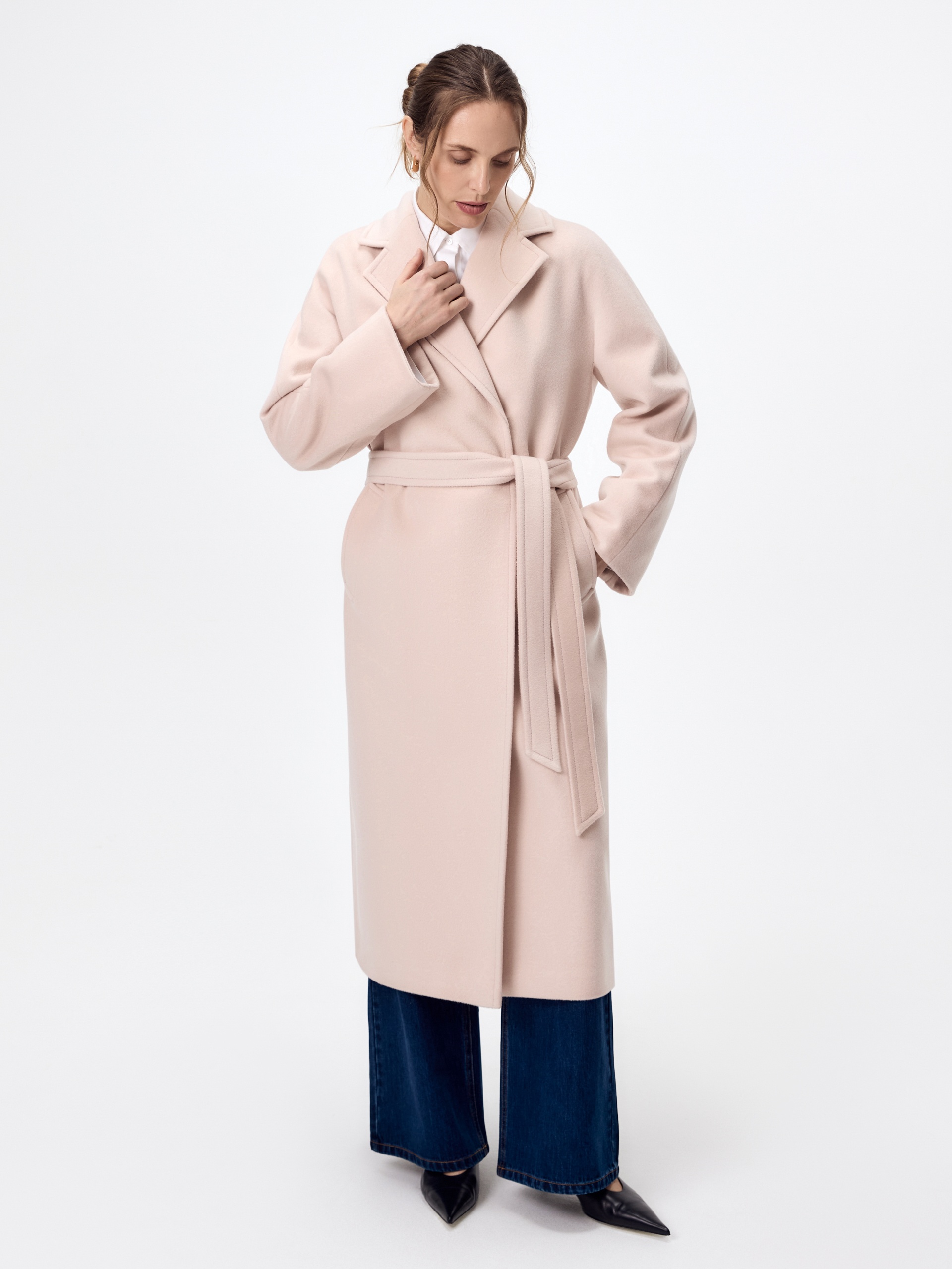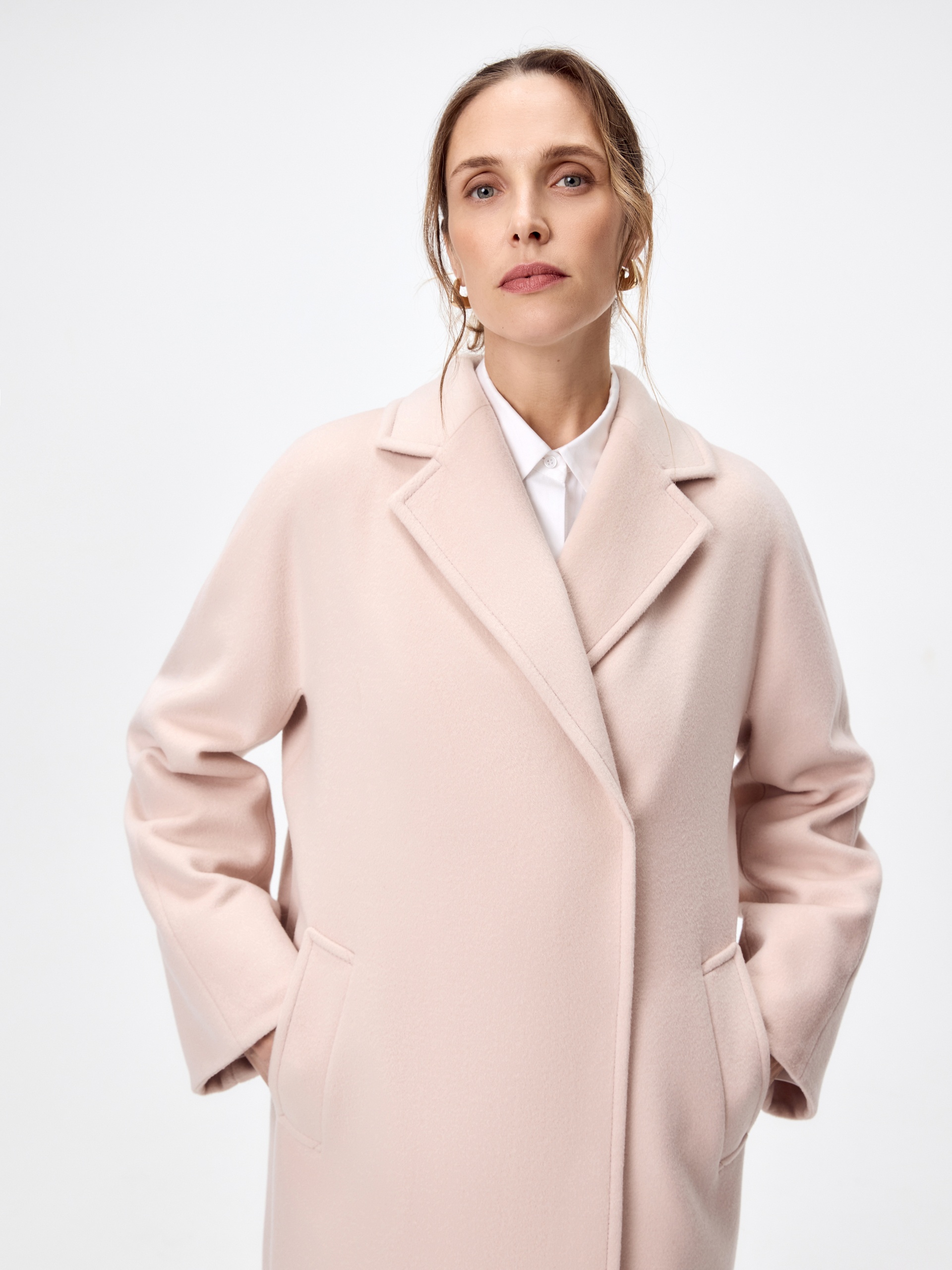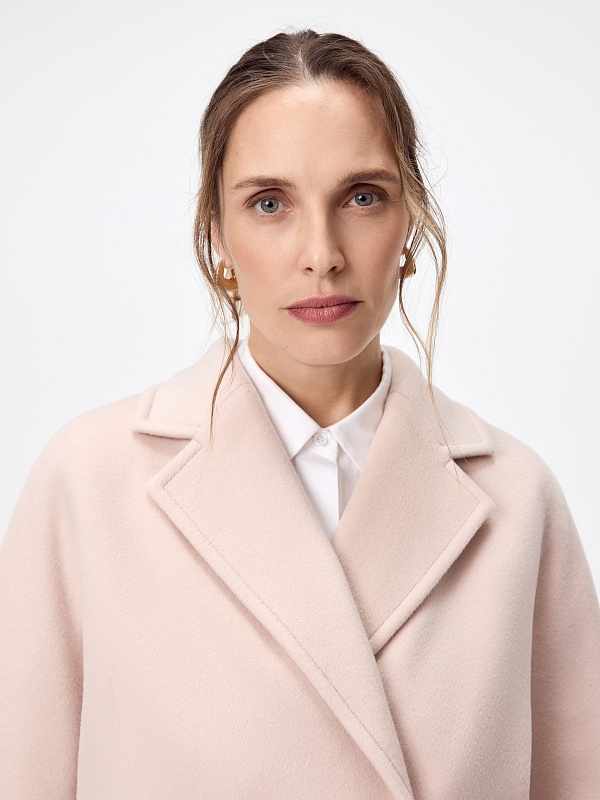 Двубортное пальто силуэта удлиненный кокон - это всем полюбившаяся классика пальто, представленная в новом видении и в современных оттенках. Пальто комфортной длины ниже колена, что расширяет возможности для формирования образов. Уникальный рукав-кимоно спереди и реглан на спинке создает уютный и расслабленный образ и не стесняет движений. Горловину пальто обрамляет классический широкий английский воротник. Пальто имеет два глубоких кармана с листочками. Застегивается ряд надёжных пришивных кнопок. Дополняет образ съемный пояс, благодаря которому можно подчеркнуть талию. Пальто изготовлено из премиальной шерстяной ткани со 100% шерсти в составе. Нежный модный оттенок "розовая дымка" дарит спокойствие и создаёт настроение. Пальто изготовлено с использованием запатентованных технологий: высокотехнологичная мембрана RaftPro надежно защищает от ветра, холода и перепада температур. Произведено в Санкт-Петербурге.