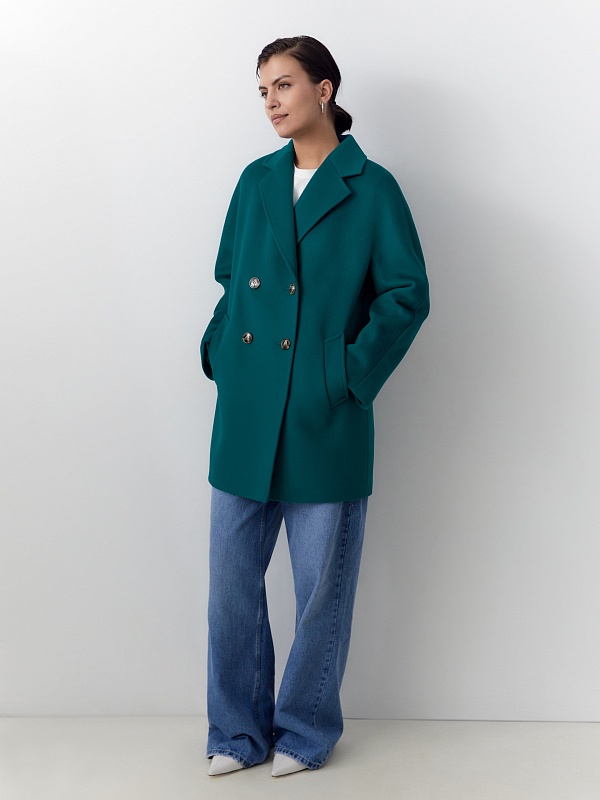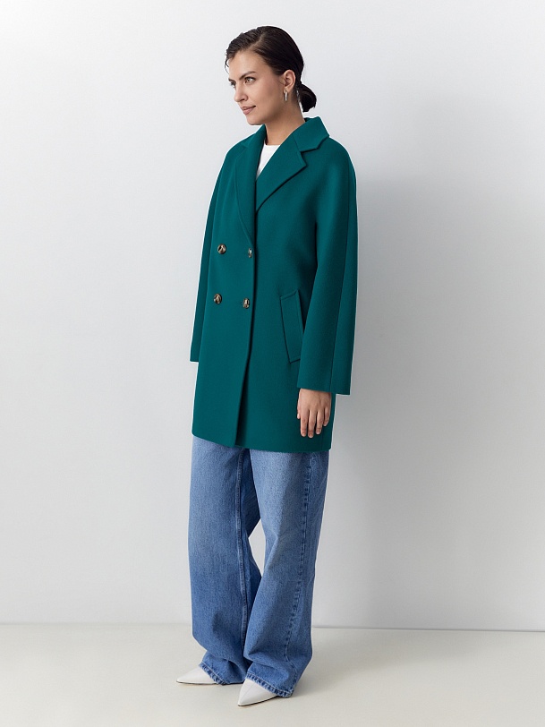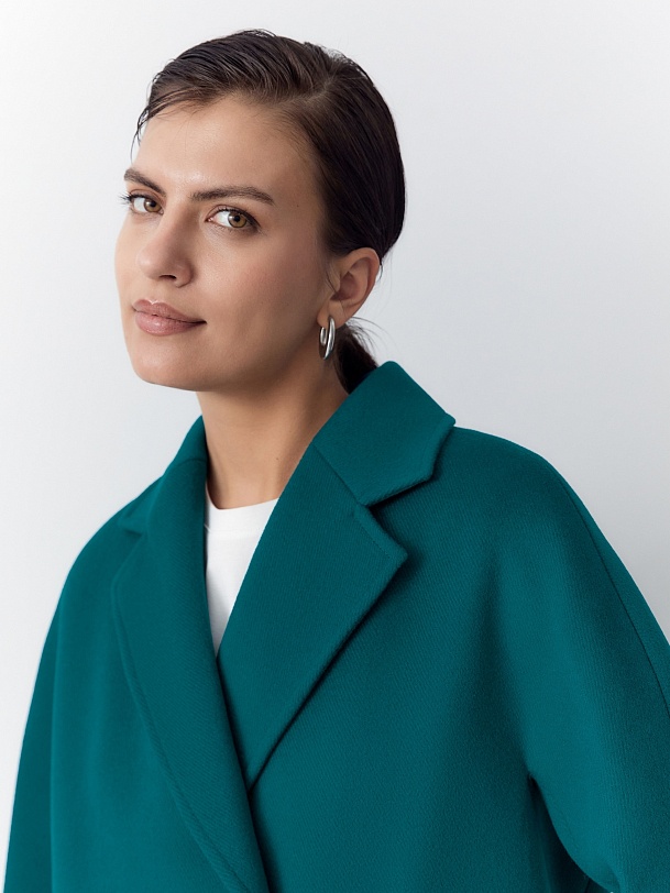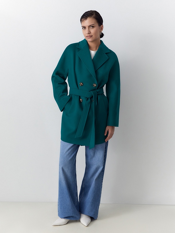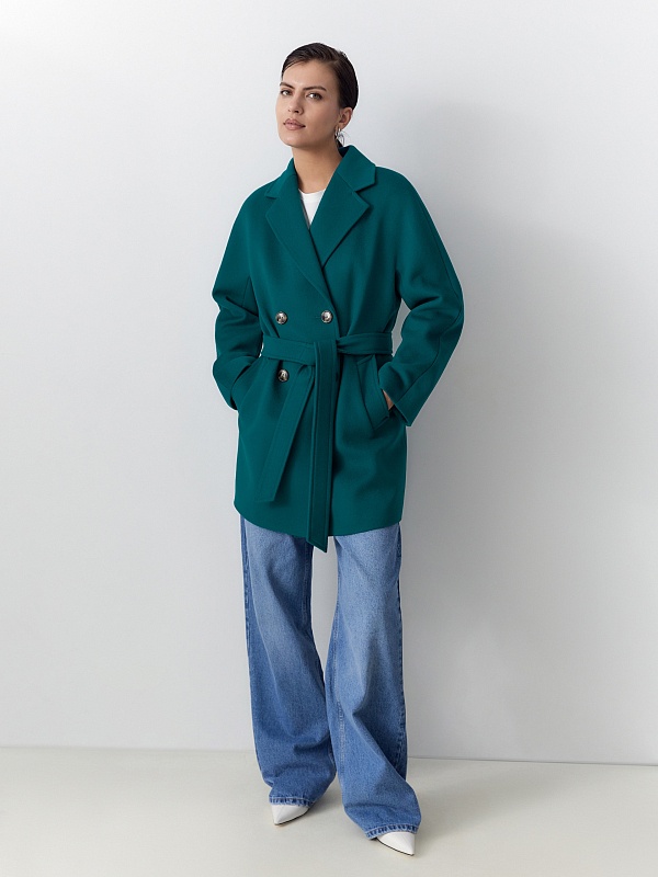 Двубортное пальто прямого силуэта - это всем полюбившаяся классика, которую мы представляем в новой длине и в палитре уникальных оттенков. Пальто укороченное, что расширяет возможности создания образов. Цельнокроенный рукав спереди визуально делает образ более уютным и расслабленным и создает дополнительный комфорт. Горловину пальто обрамляет классический английский воротник. Пальто имеет два глубоких кармана с листочками, застегивается на два ряда стильных крупных пуговиц под натуральный рог. Дополняет образ съемный пояс. Пальто изготовлено из премиальной ткани с высоким содержанием шерсти в ярком бирюзовом оттенке. Произведено с использованием запатентованных технологий: высокотехнологичная мембрана RaftPro надежно защищает от ветра, холода и перепада температур. Произведено в Санкт-Петербурге.