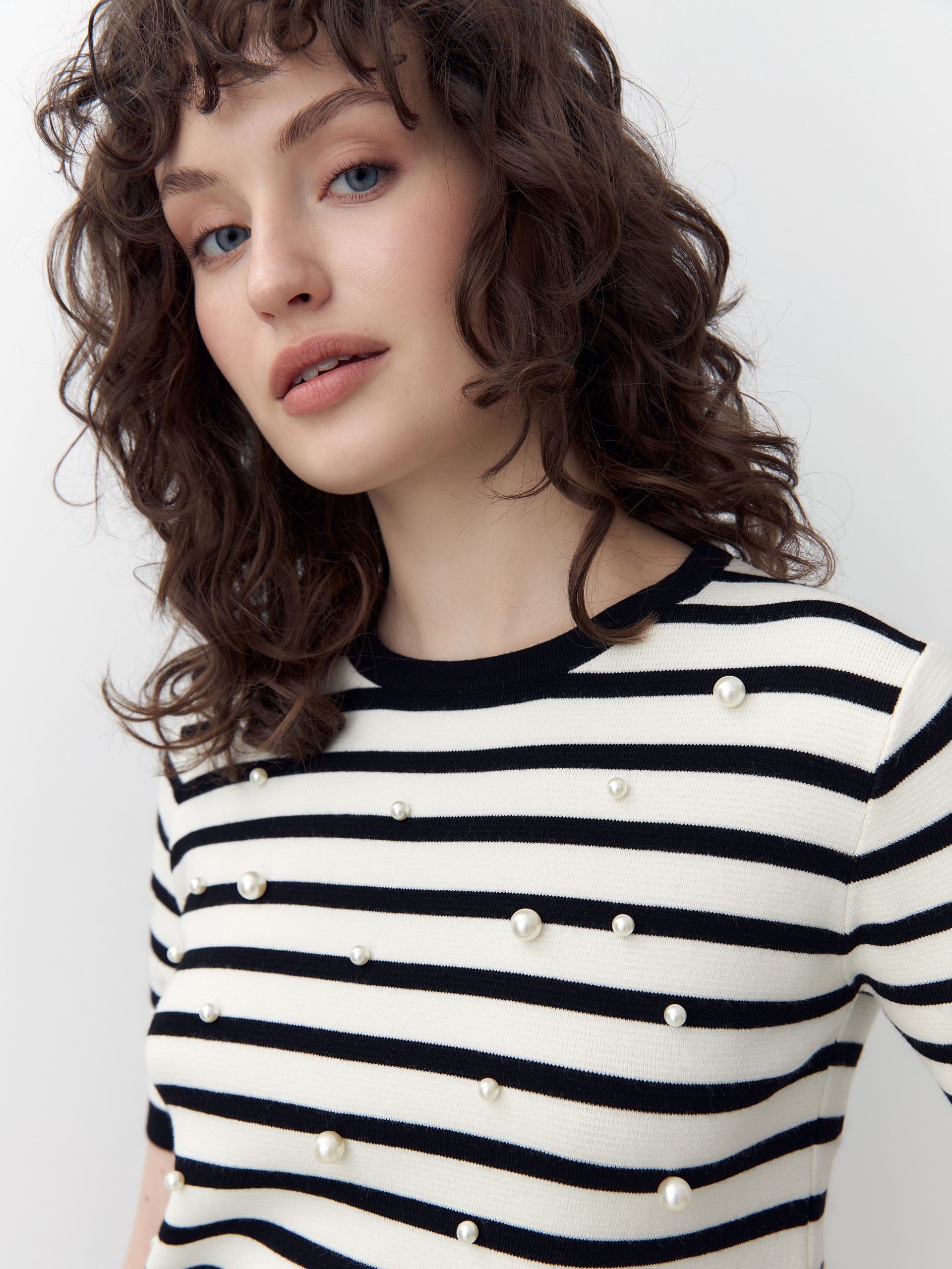 Вязаный джемпер с жемчужными бусинами