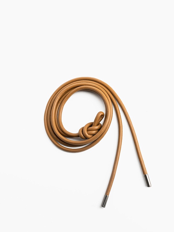 Длинный пояс-шнурок, выполненный из тонкой экокожи в цвете кемэл, станет неотъемлемым элементом вашего образа.