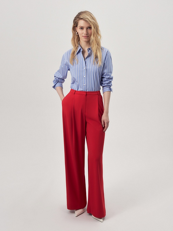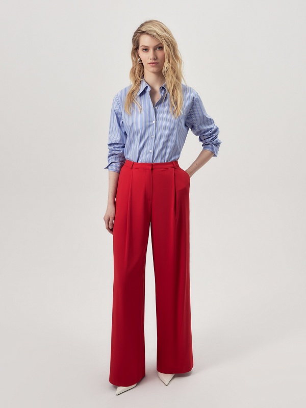 Яркие широкие брюки из натуральной ткани
