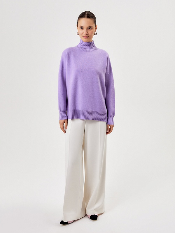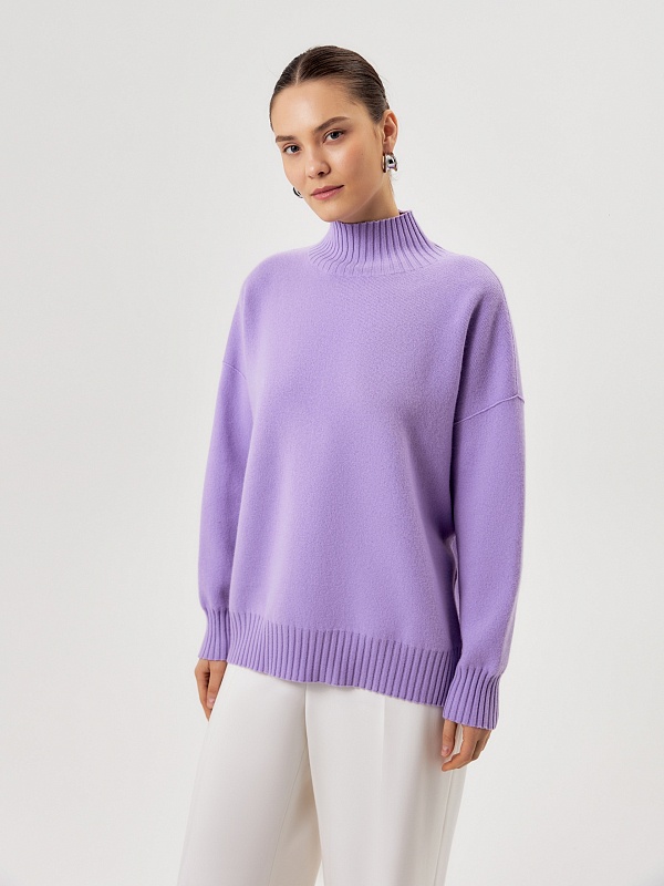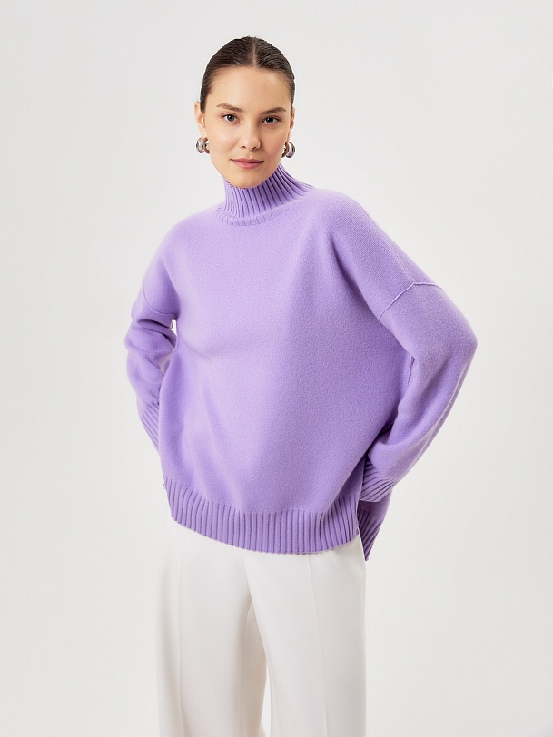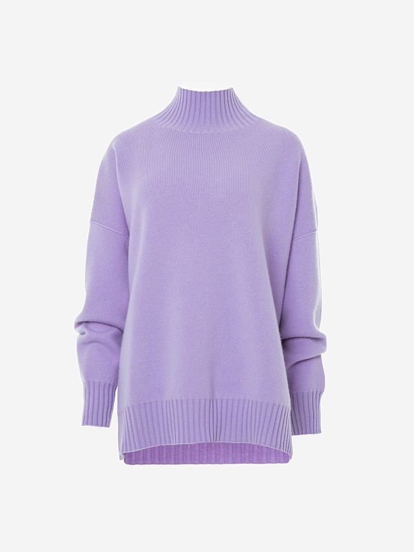 Теплый и свободный свитер из кашемира с воротником-стойкой и небольшими разрезами в боковых швах, создает атмосферу уюта и комфорта.