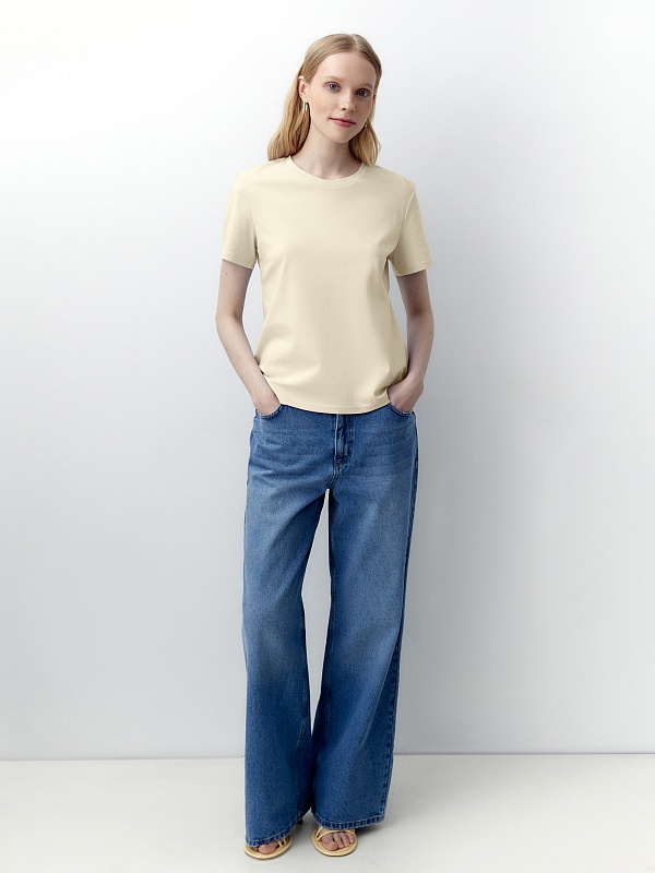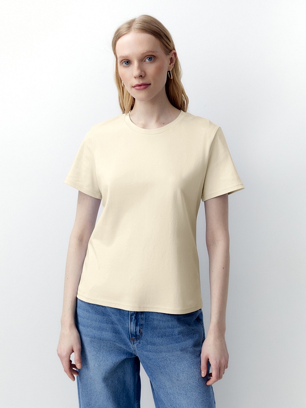 Футболка прямого силуэта свежего лимонного цвета будет прекрасно сочетаться как с денимными изделиями, так и с классическими ансамблями. Мерсеризированный хлопок имеет шелковистый блеск и не деформируется после стирок, практически не мнется и не выцветает со временем.
