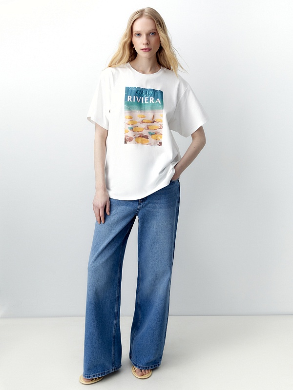 Свободная футболка с принтом из премиального мерсеризированного хлопка.
