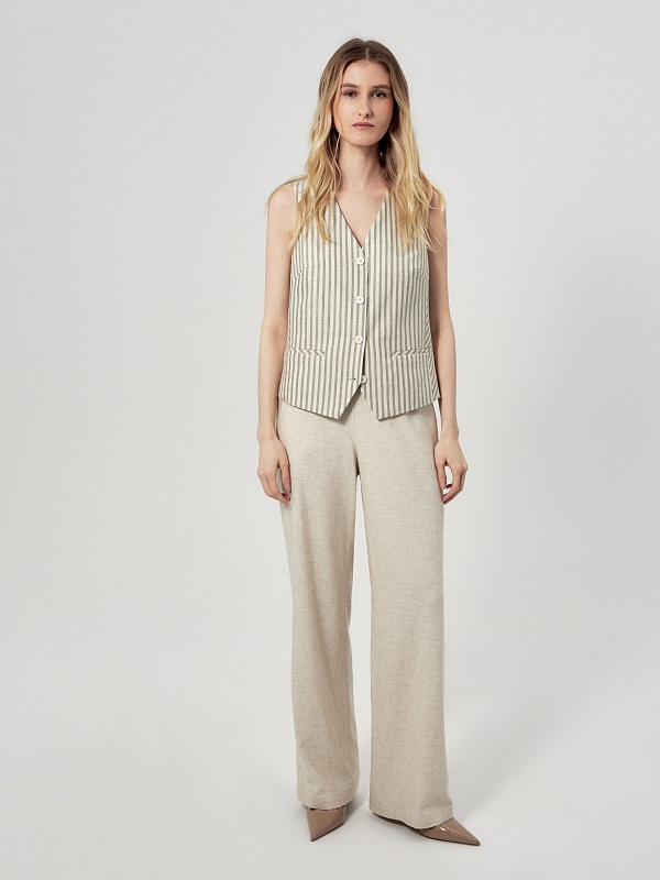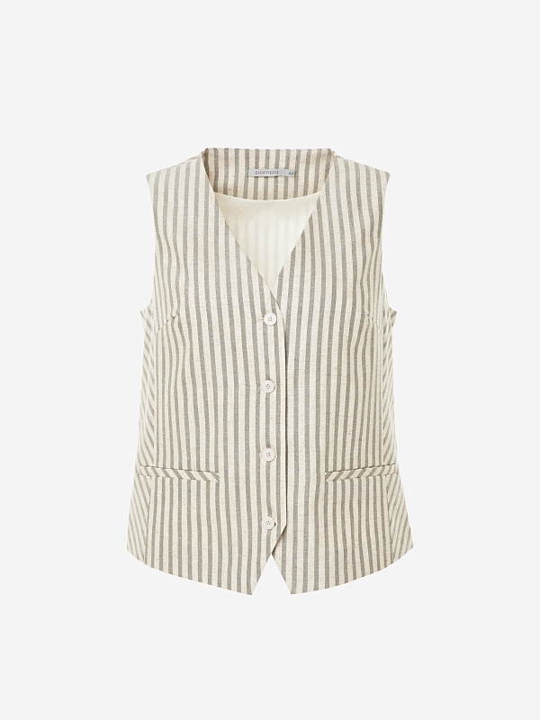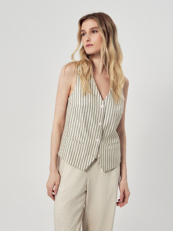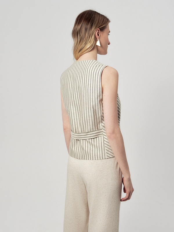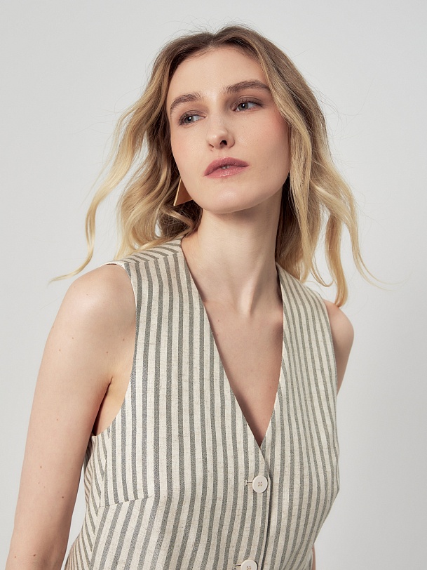 Полосатый жилет из вискозы и льна