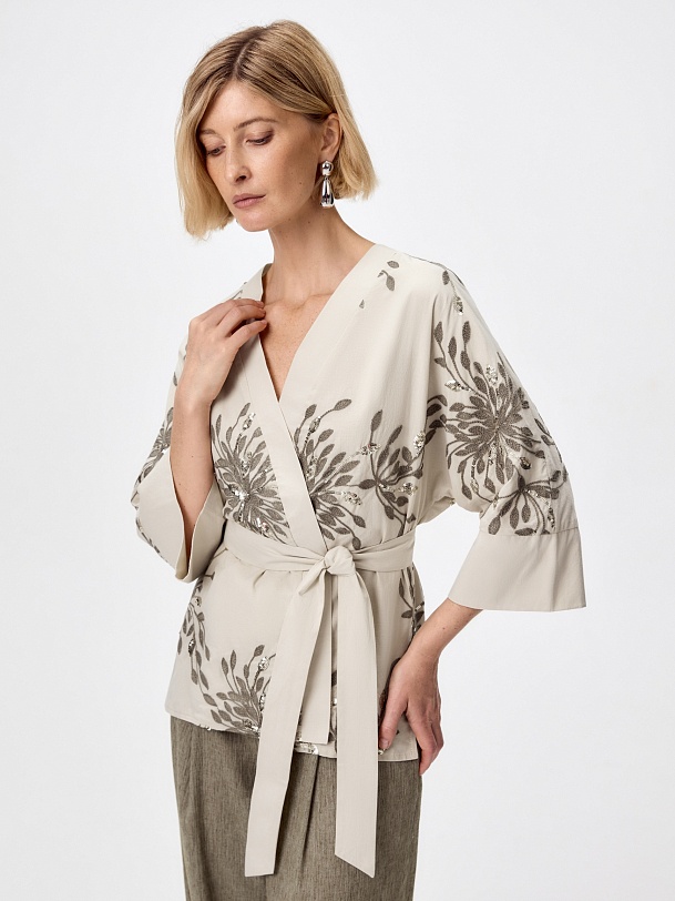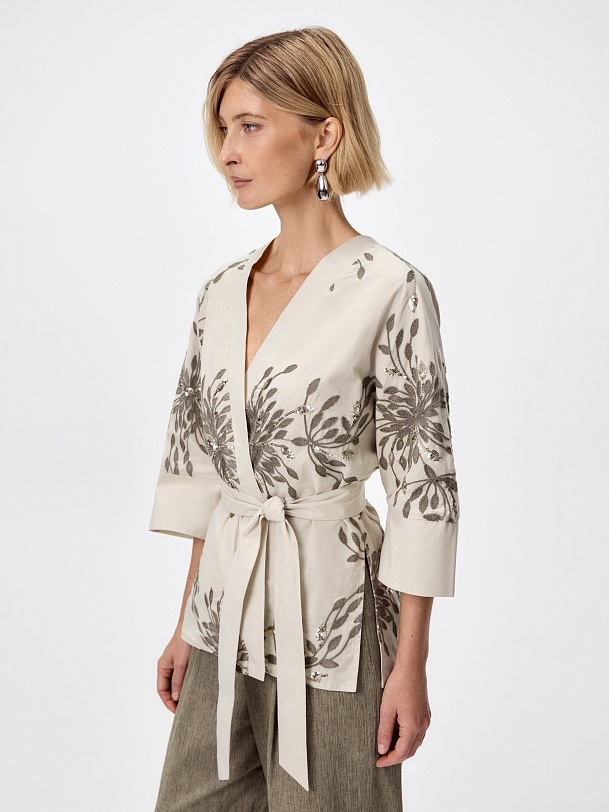 Жакет-кимоно из 100% хлопка с вышивкой