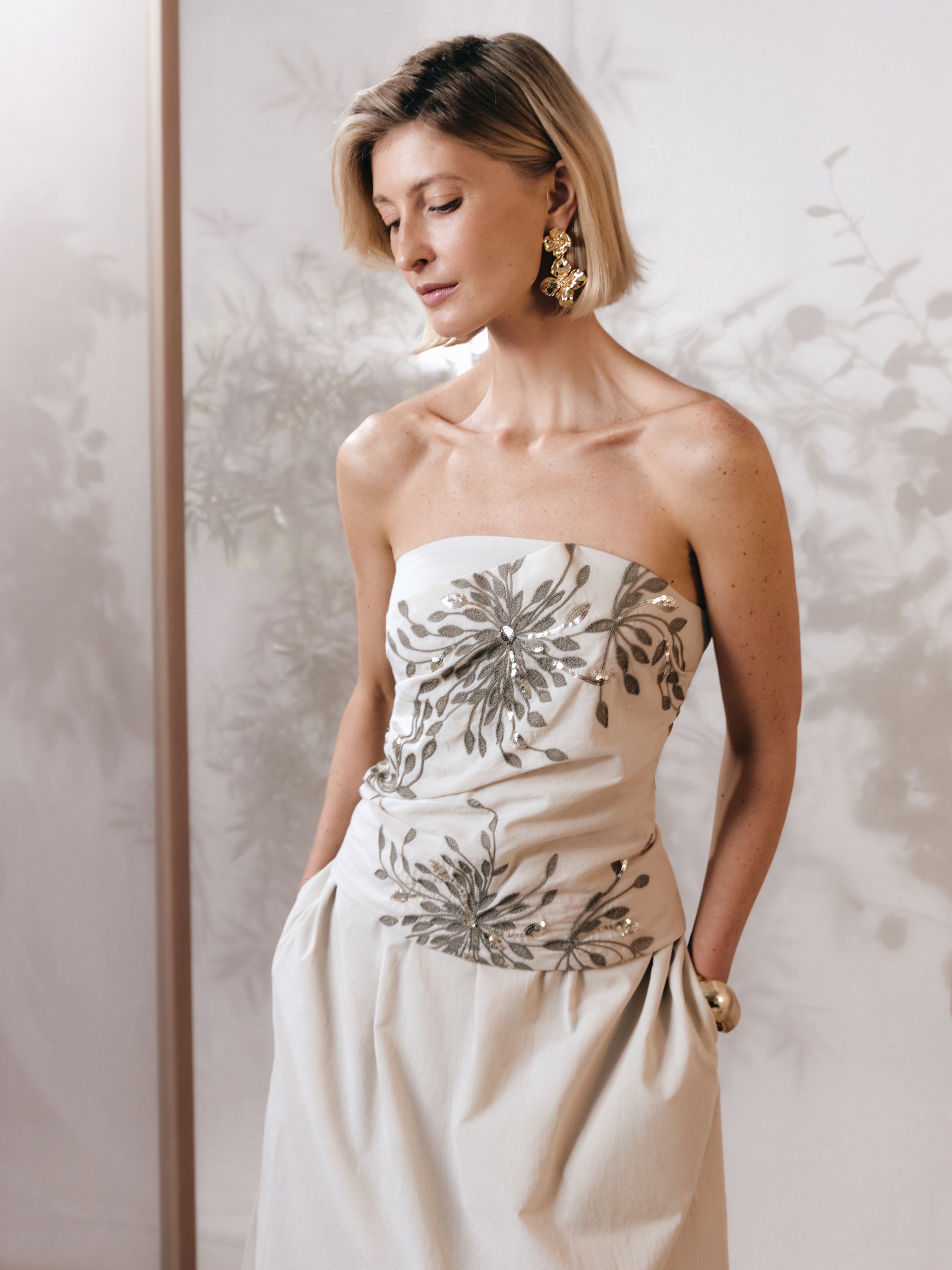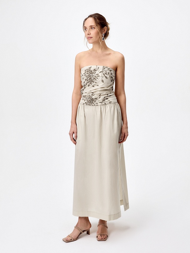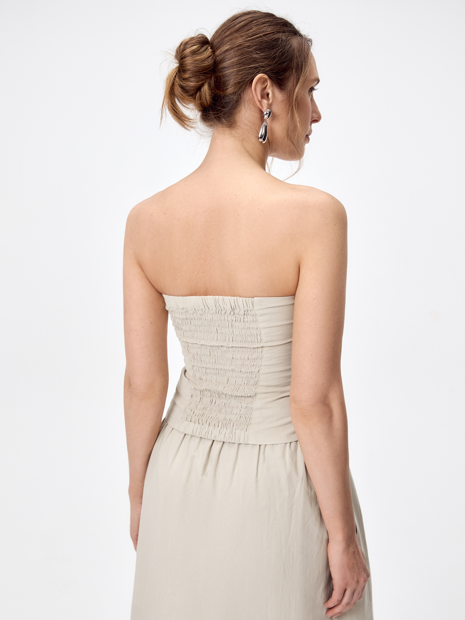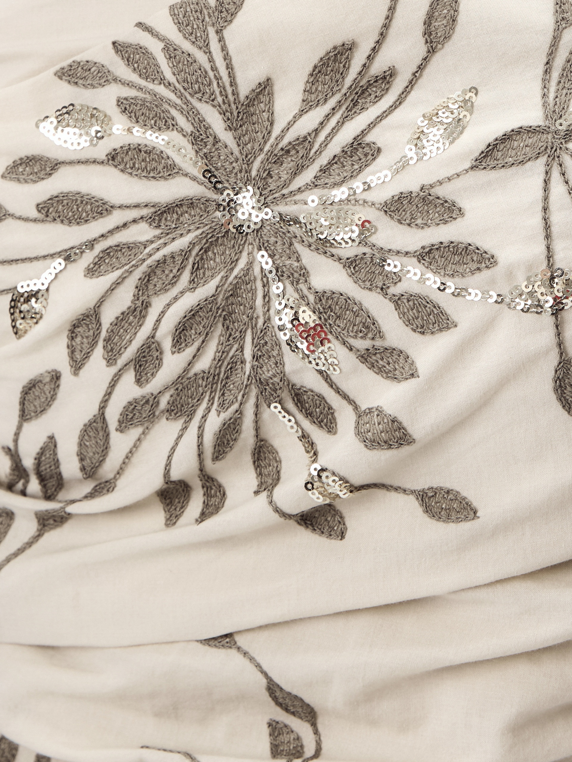 Двойной топ со складками и вышивкой пайетками, в боковом шве потайная молния на спинке резинка-жилка для лучшей посадке.