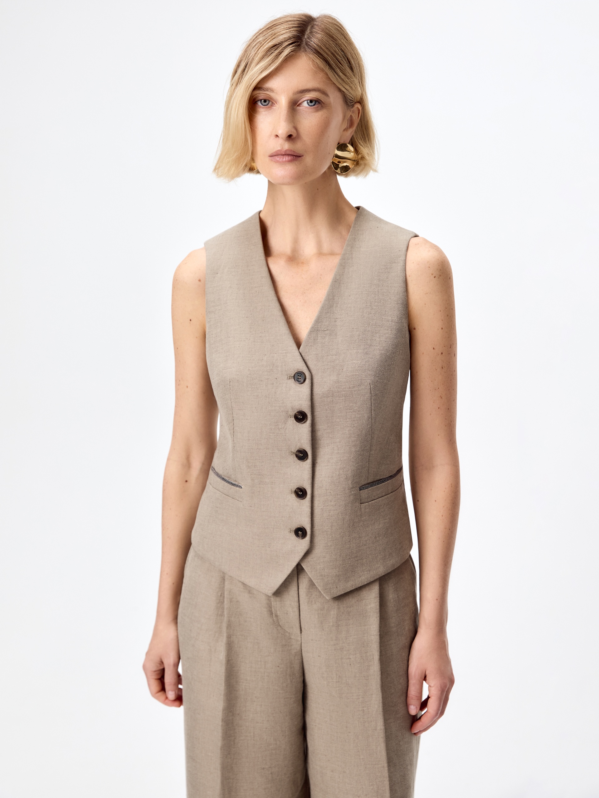 Жилет костюмный из хлопка и льна