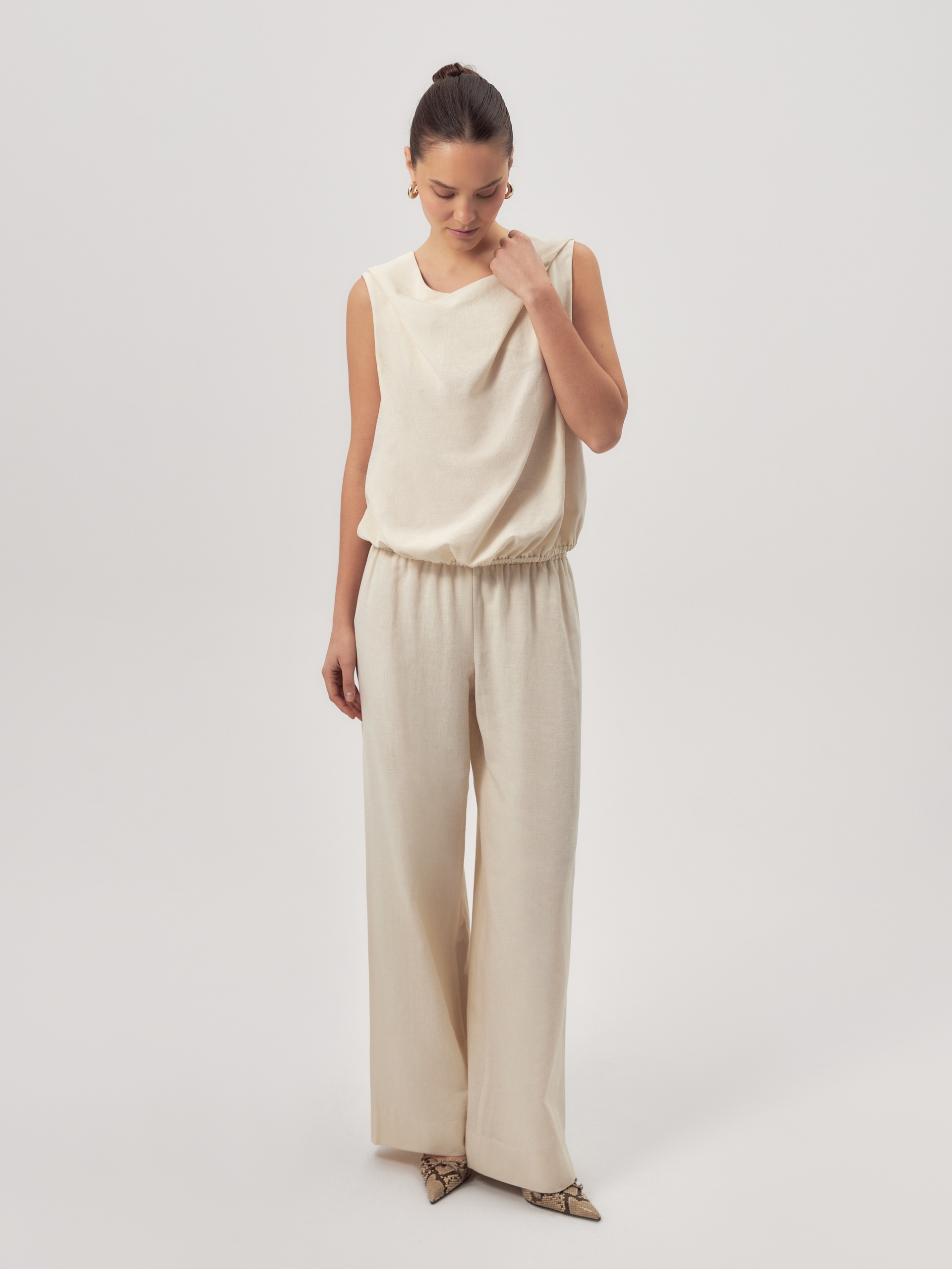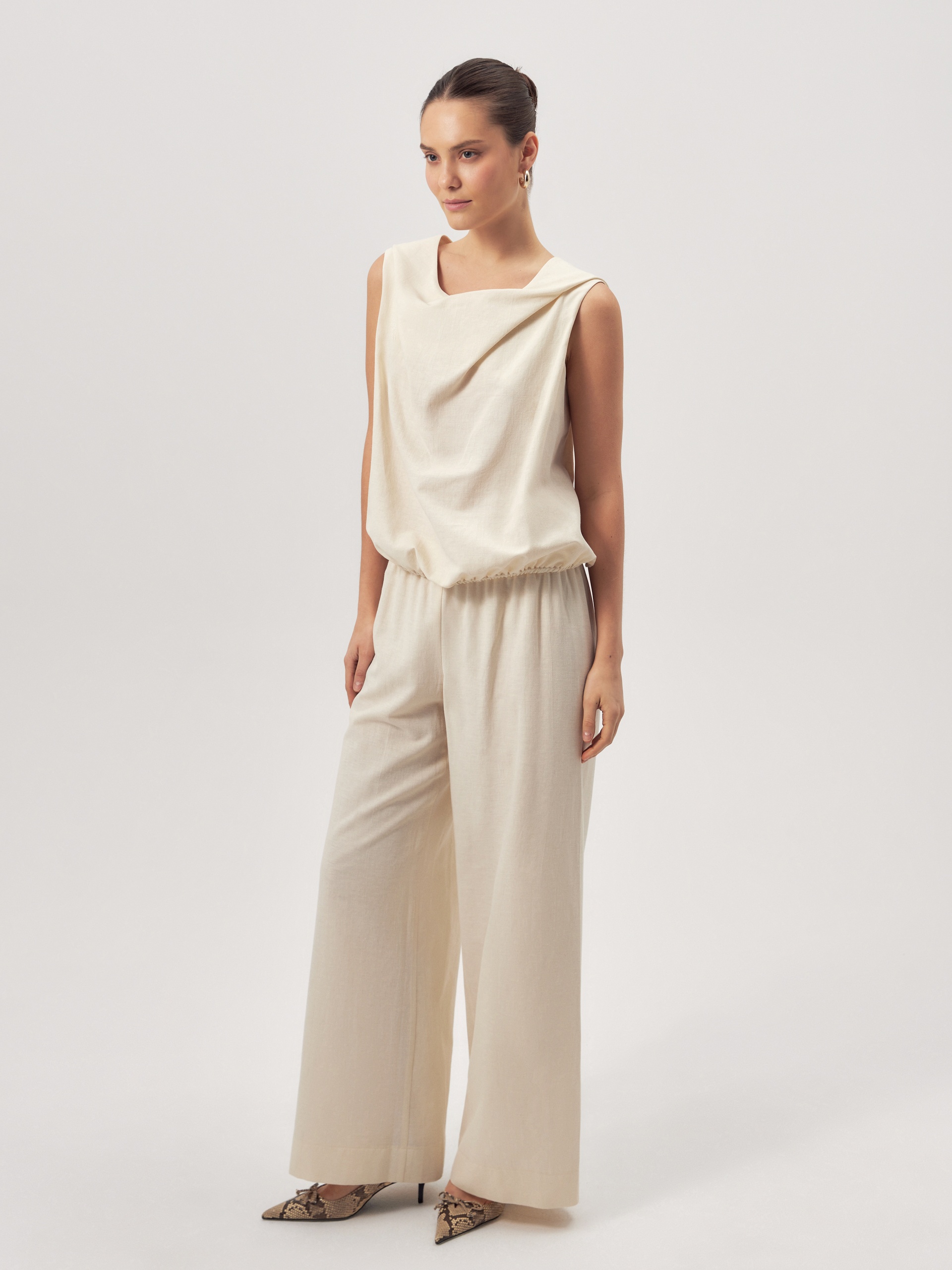 Купила из-за необычного кроя, интересная задумка, но не сразу поняла, как лучше её "посадить". С тканью всё ок — лёгкая, приятная, летом будет комфортно.