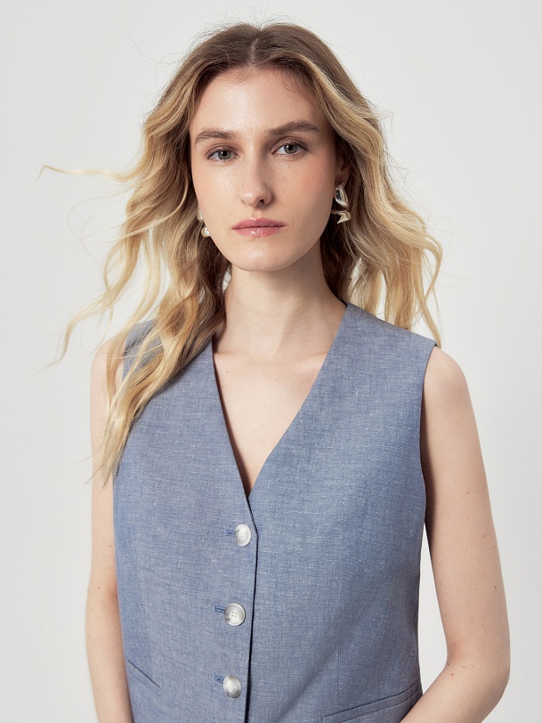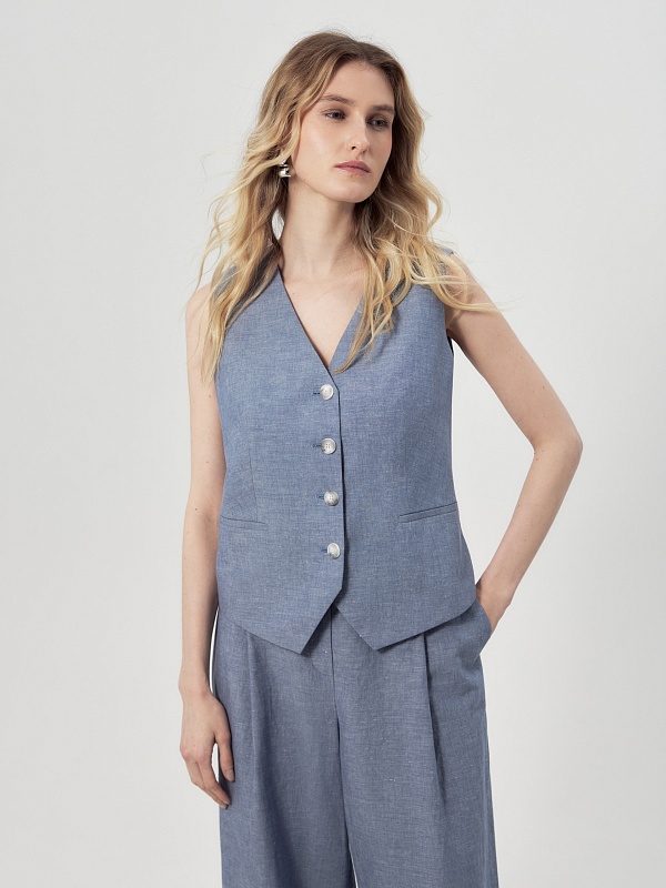 Прямой жилет из хлопка и льна
