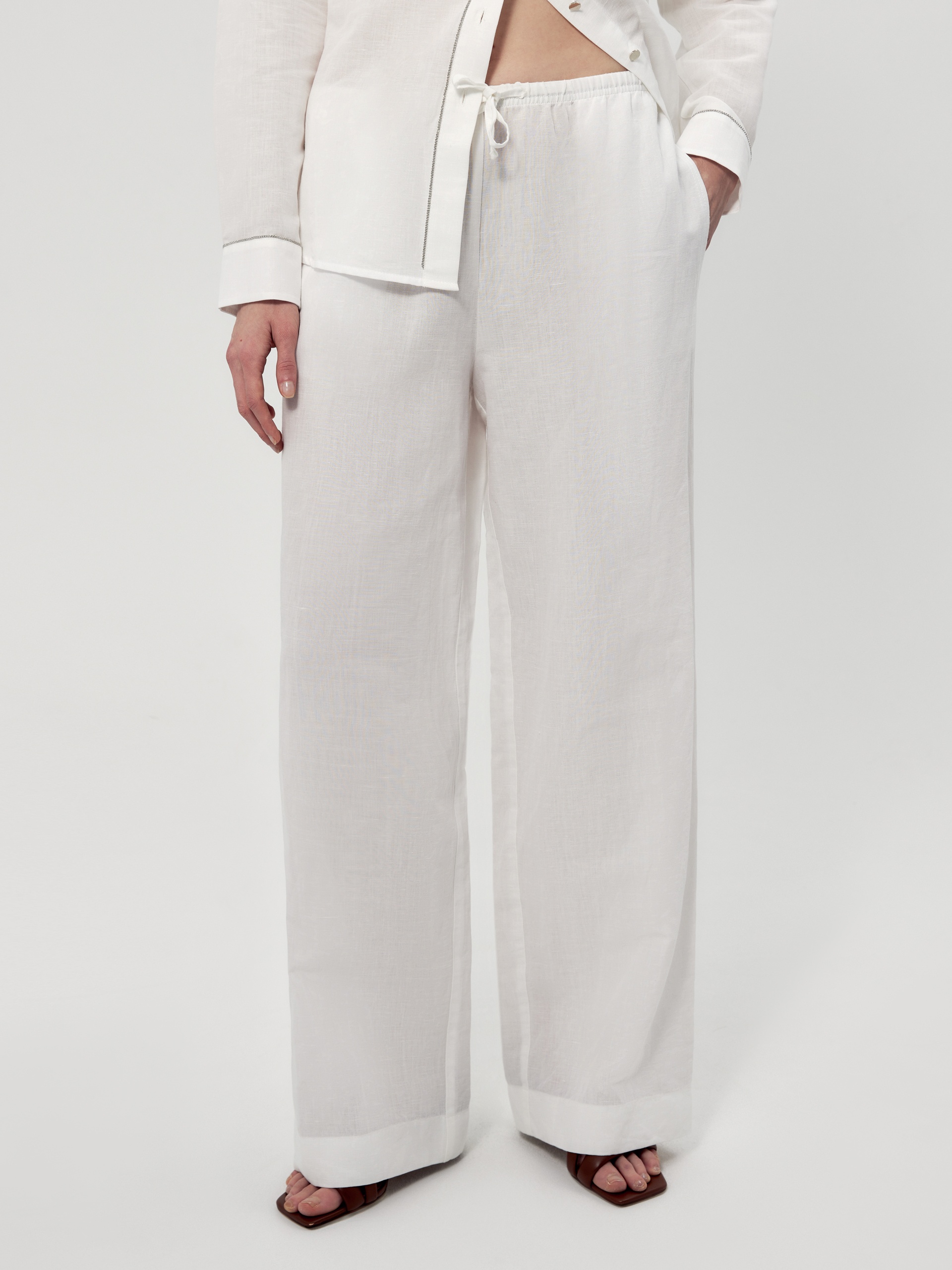 Широкие брюки из хлопка и льна