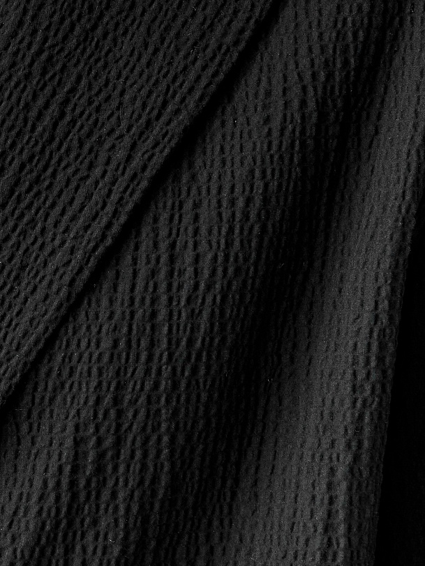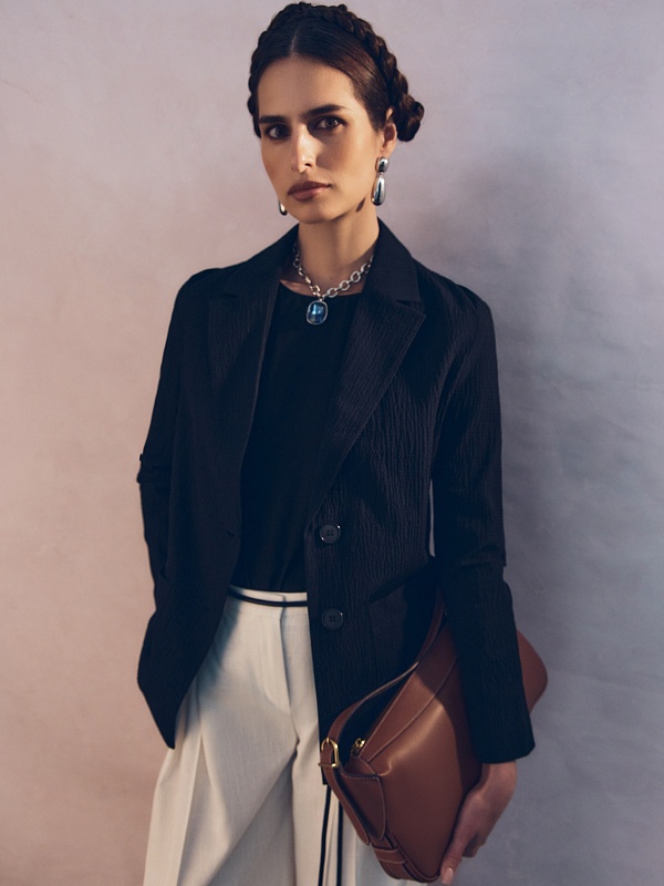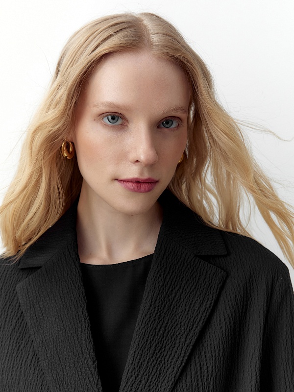 Однобортный жакет прямого кроя — современная интерпретация классической формы с акцентом на комфорт и экологичность. Модель выполнена из натурального хлопка с выраженной фактурой. Благодаря отсутствию подкладки жакет остаётся лёгким и мягким — его удобно носить как в тёплую погоду, так и в составе многослойных комплектов.