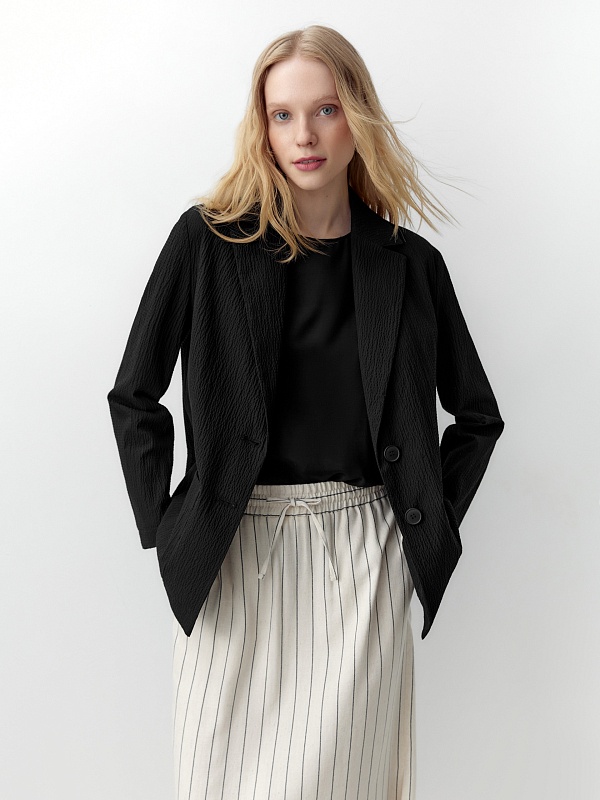 Жакет подходит почти ко всему, ткань интересная на ощупь.