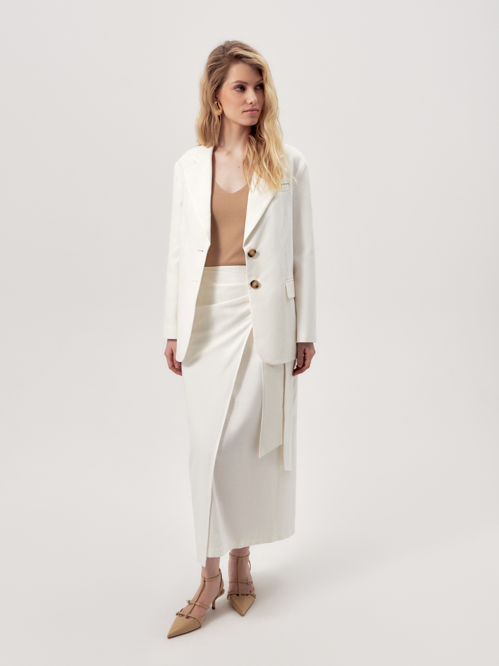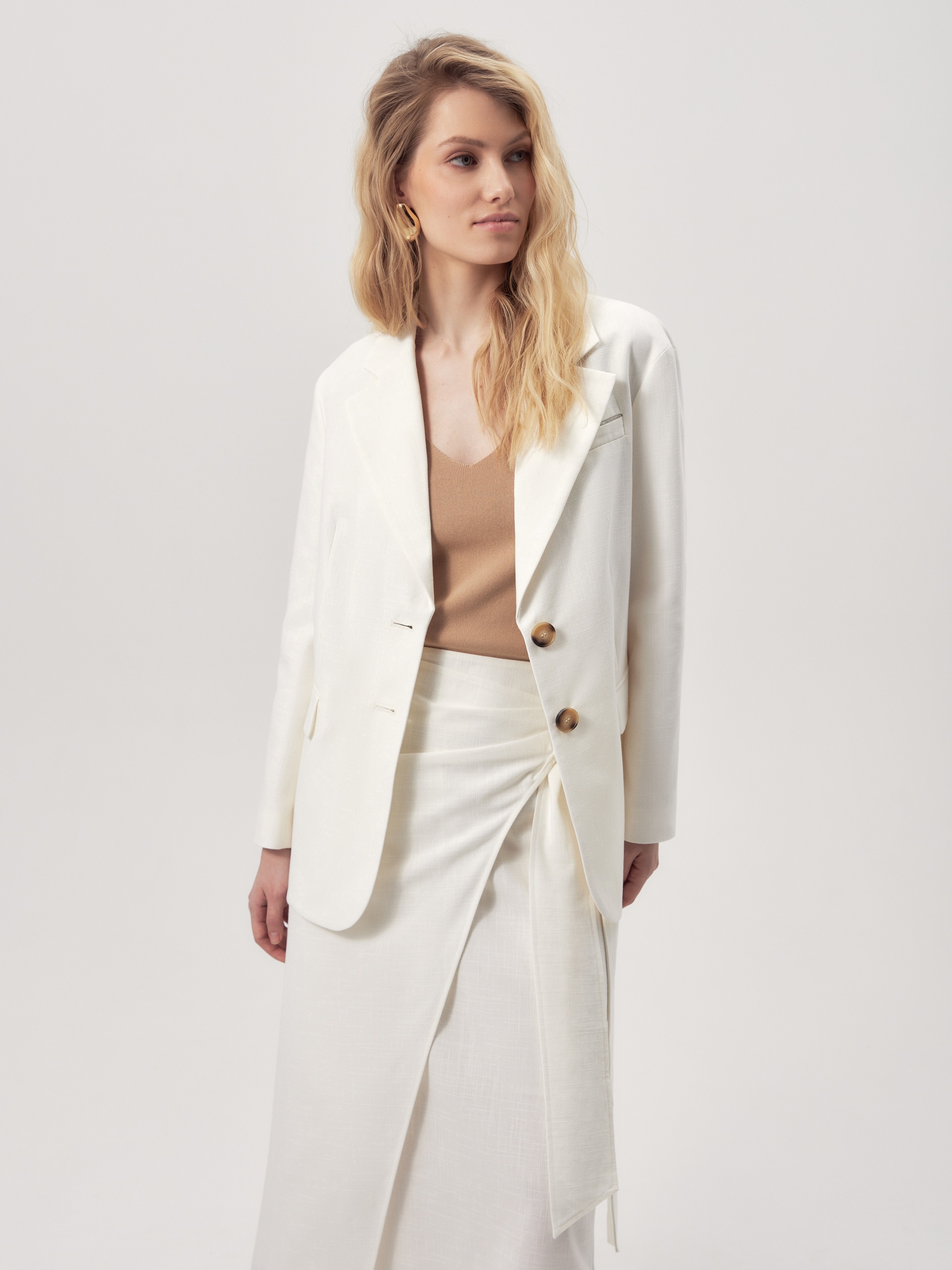 Белый жакет из фактурной хлопковой ткани