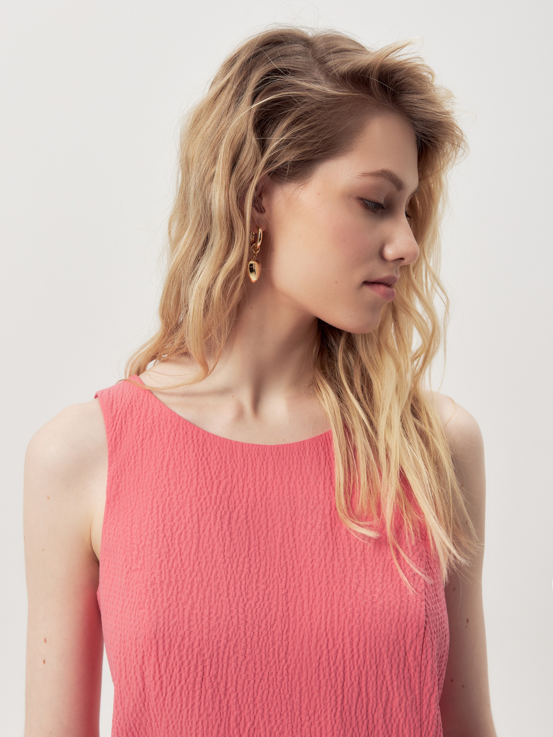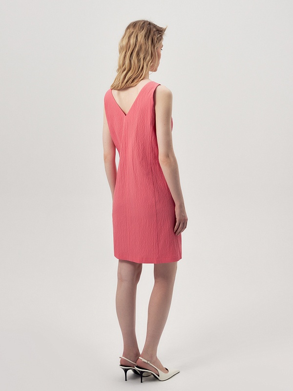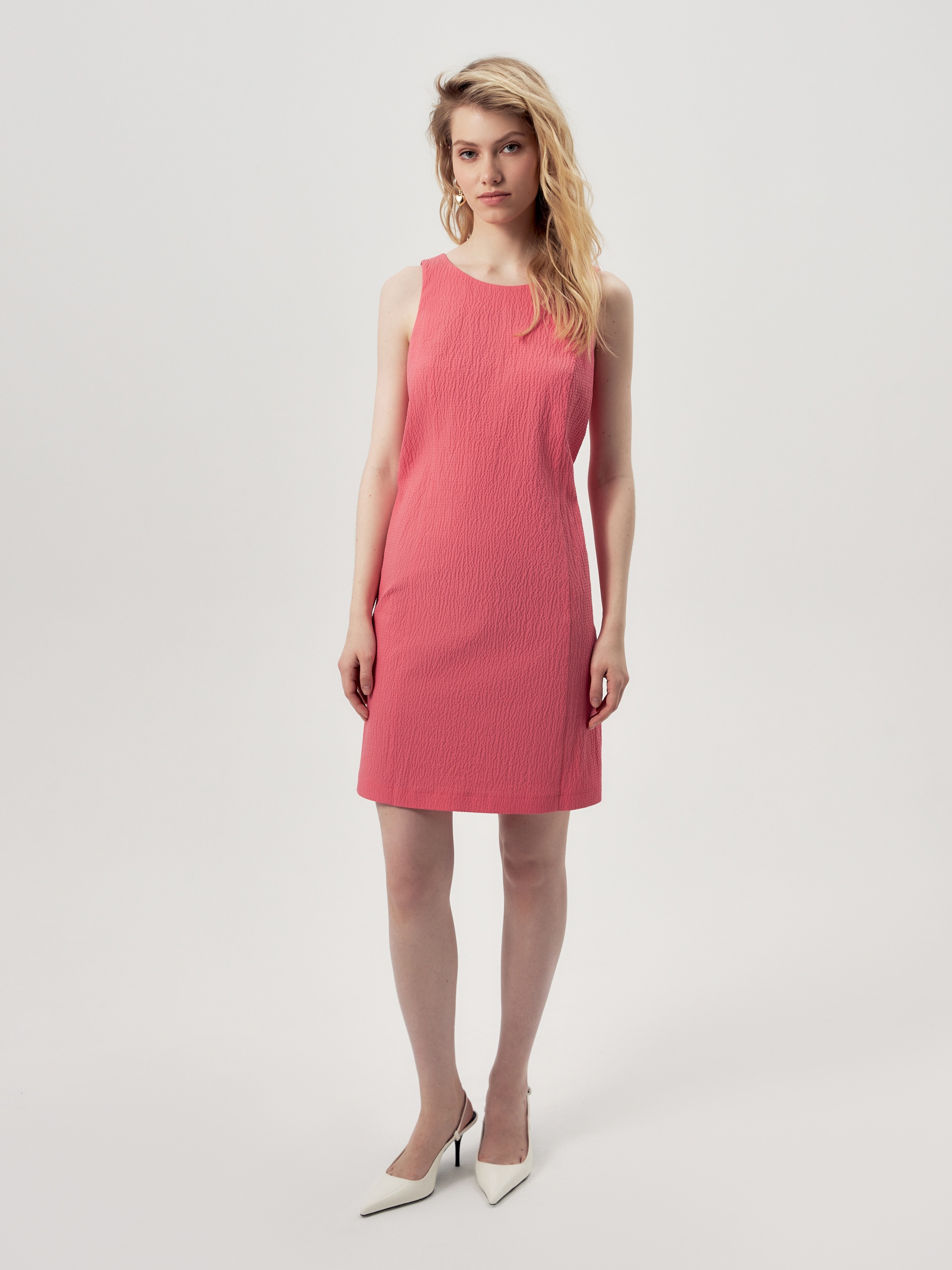 Прямое платье насыщенного кораллового оттенка — воплощение утончённой простоты и летней свежести.