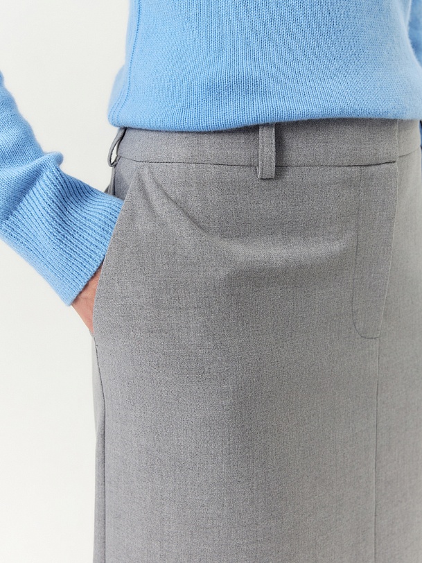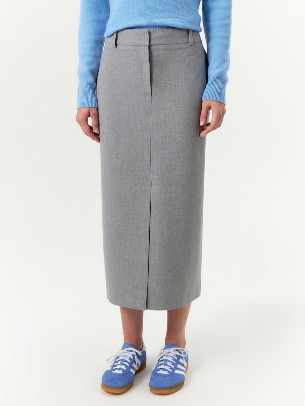 Лаконичная и элегантная юбка в светло-сером оттенке выполнена из французской костюмной ткани с добавлением вискозы. Материал отличается плотной структурой, устойчивой к деформации, и лёгким матовым блеском, придающим изделию аккуратный, благородный вид. Универсальный серый цвет легко вписывается в гардероб и гармонично подстраивается под разнообразные сочетания.