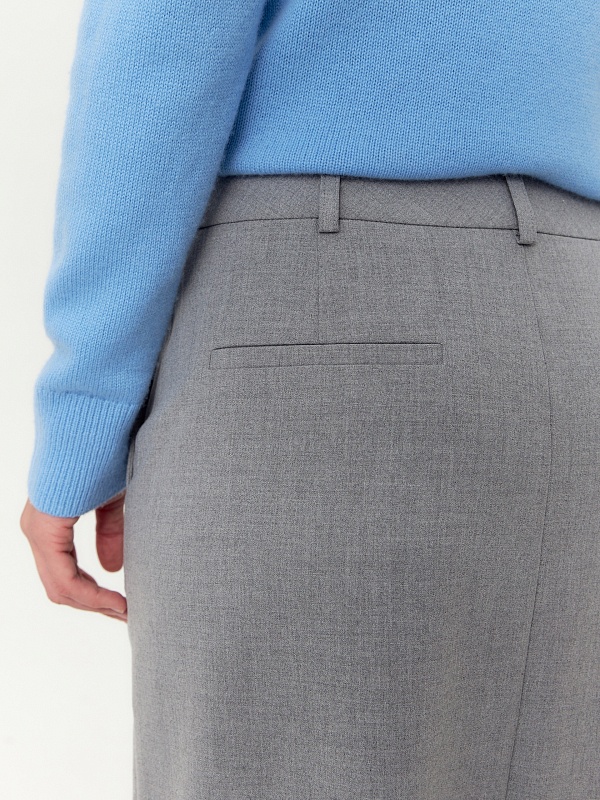Пояс со шлёвками аккуратно акцентирует талию и позволяет дополнять образ ремнём. Глубокая шлица по переду изделия обеспечивает свободу шага. Функциональные боковые карманы добавляют практичности, а декоративные карманы-листочки на спинке отсылают к эстетике классических брюк, завершая общий дизайн изделия.