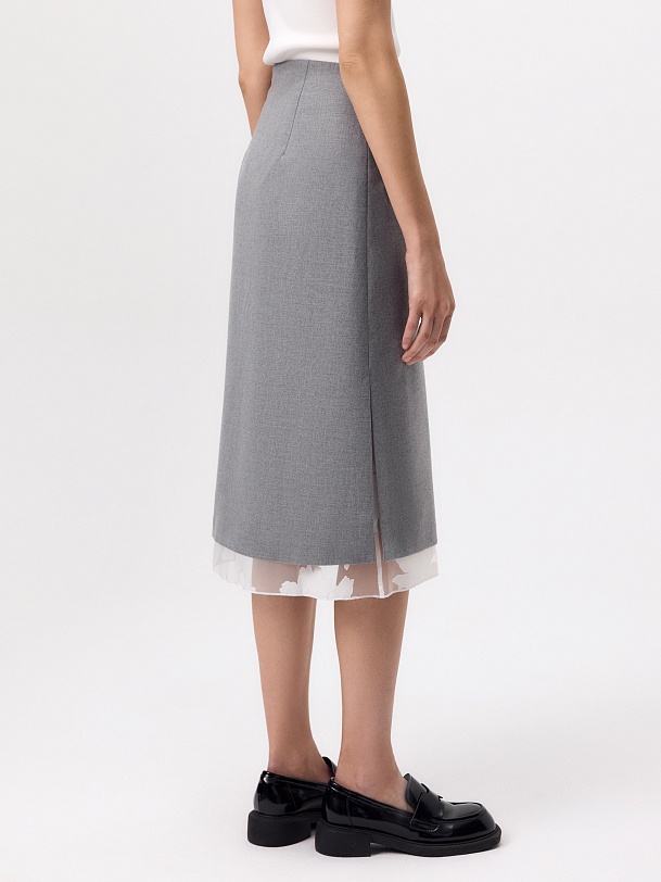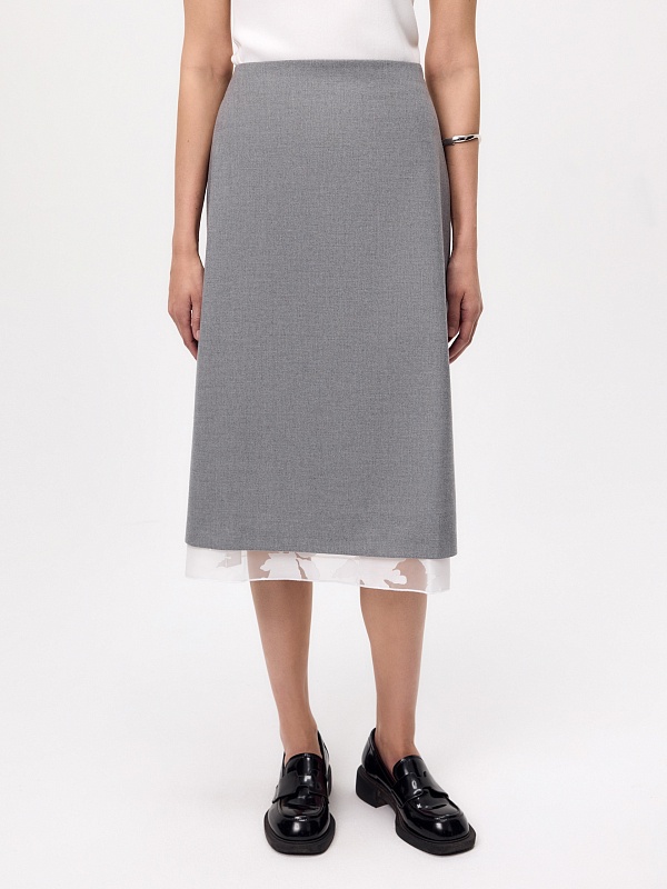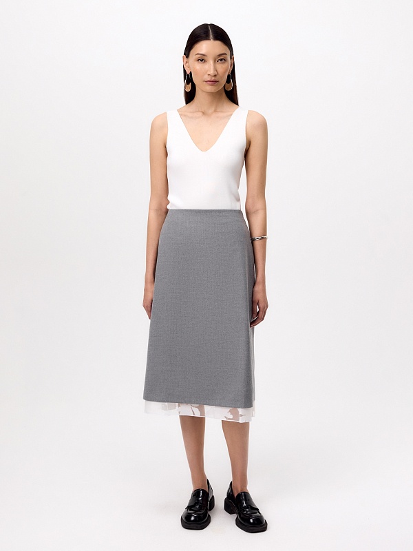 Юбка гармонично сочетается с рубашками, топами и джемперами, а также эффектно смотрится с полупрозрачной блузой-компаньоном из белой органзы.