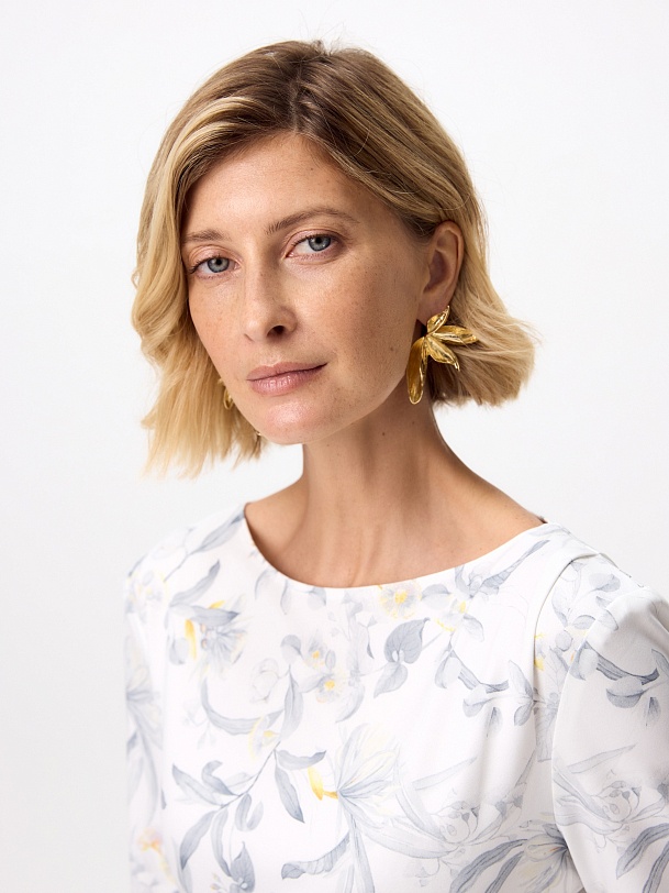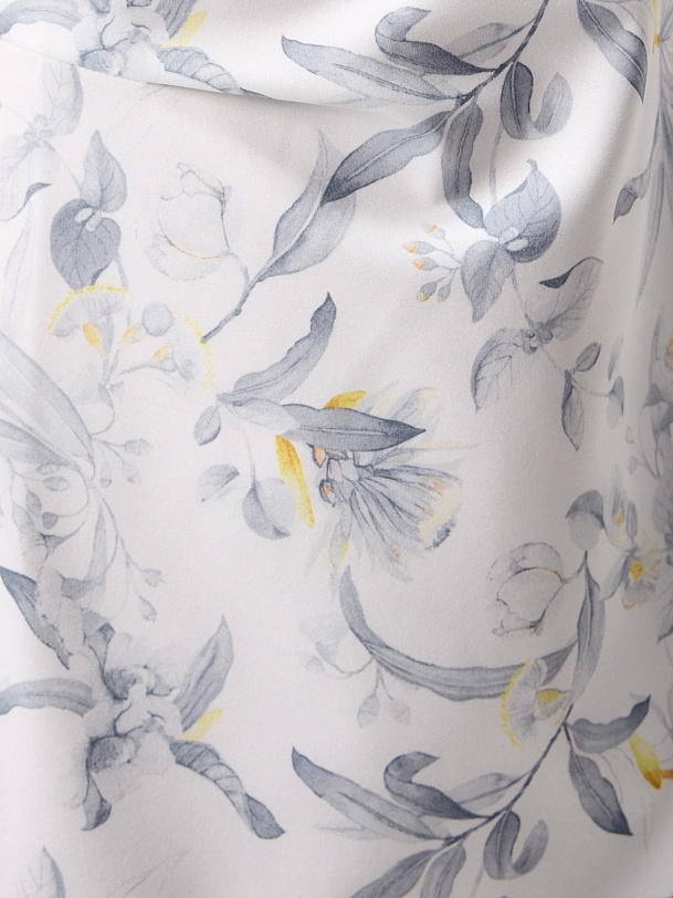 Платье выполнено из эластичного трикотажа — мягкого и приятного на ощупь материала. Он хорошо тянется, устойчив к деформации и практически не мнется, что делает изделие не только стильным, но и практичным. Нежный, но сдержанный принт с цветочными мотивами позволяет сочетать платье как с повседневными, так и с более нарядными аксессуарами.