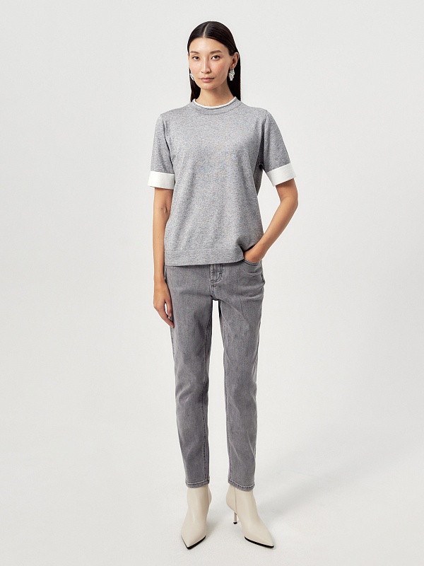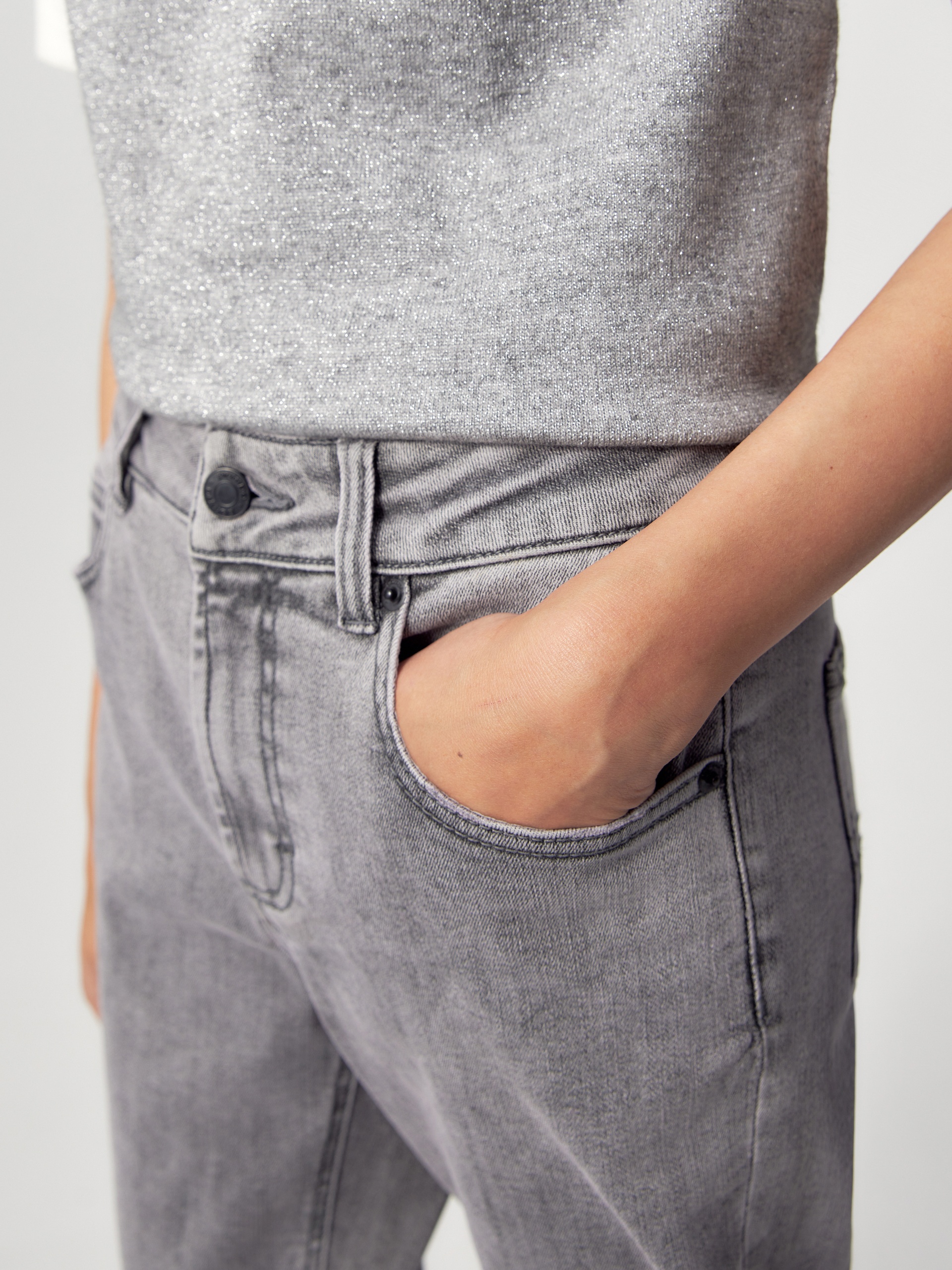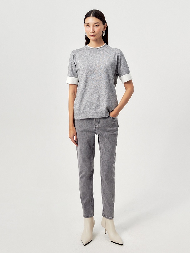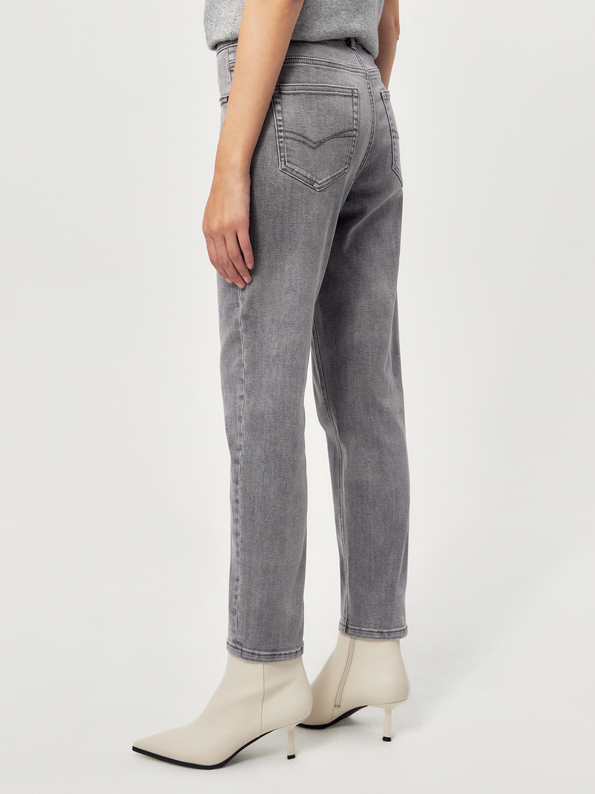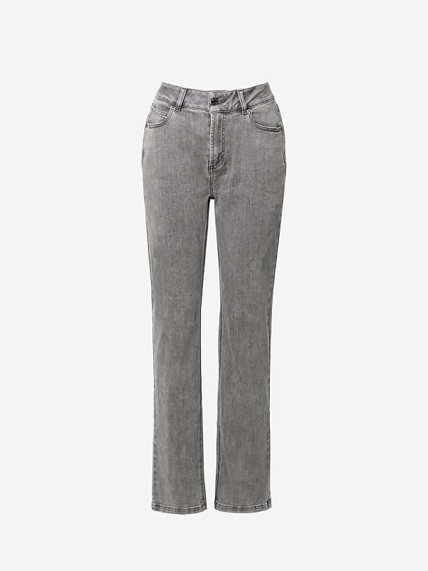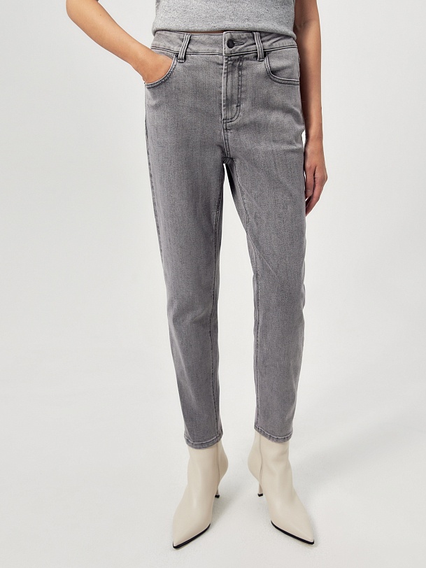 Зауженные джинсы на средней посадке темно-серого цвета.